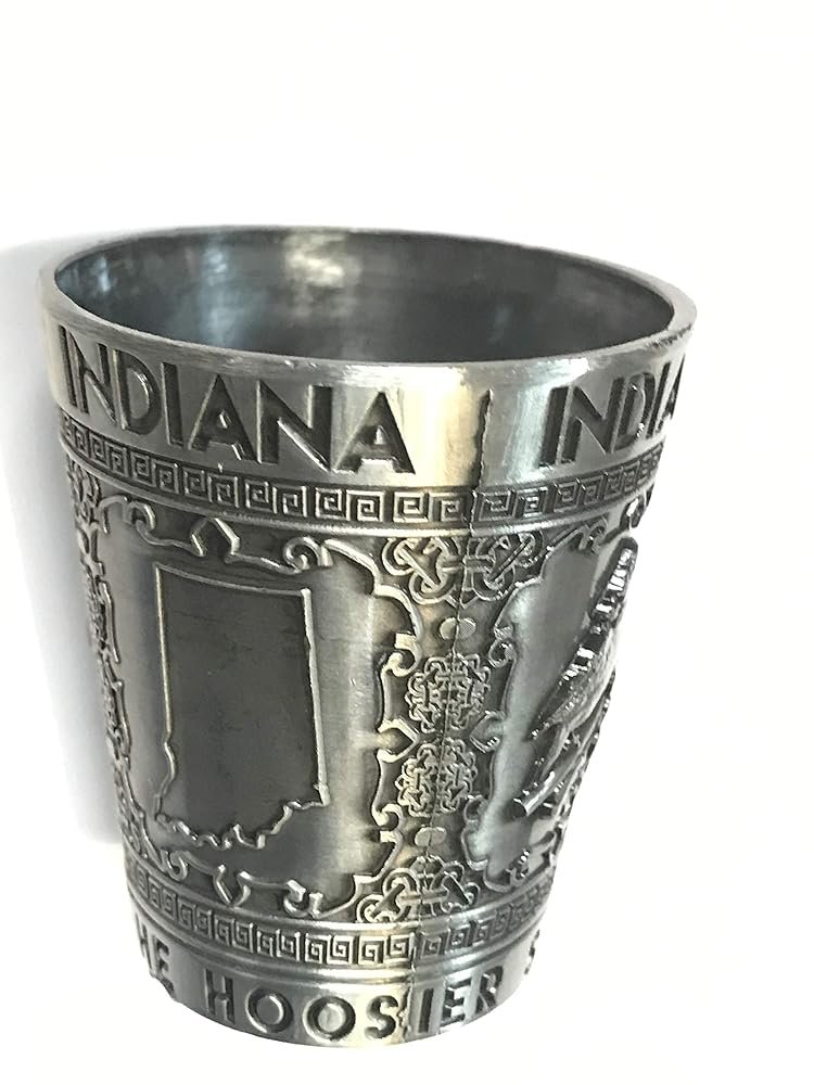 States Souvenir Metal Shot Glass Pewter Design – Texas Nashville Indiana Iowa ST. Louis Chicago Kentucky Ohio Illinois Collectible Metal Shot with Iconic Images (Indiana The…