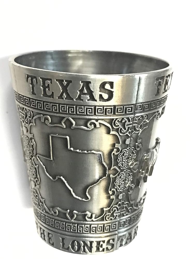 States Souvenir Metal Shot Glass Pewter Design – Texas Nashville Indiana Iowa ST. Louis Chicago Kentucky Ohio Illinois Collectible Metal Shot with Iconic Images (Texas The Lone…