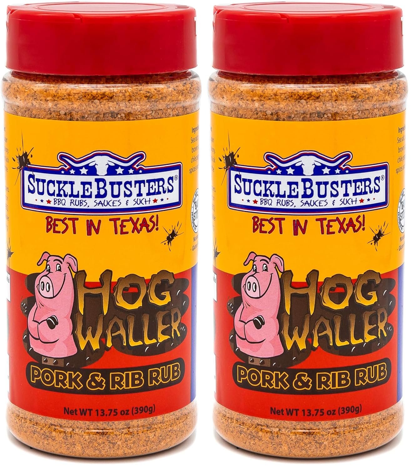 SuckleBusters Hog Waller: Texas Best Pork BBQ Rub, Sweet & Salty Seasoning for Pork Ribs, Butt, Chops, Gluten-Free, No MSG Shaker (13.75oz) (Pack of 2)