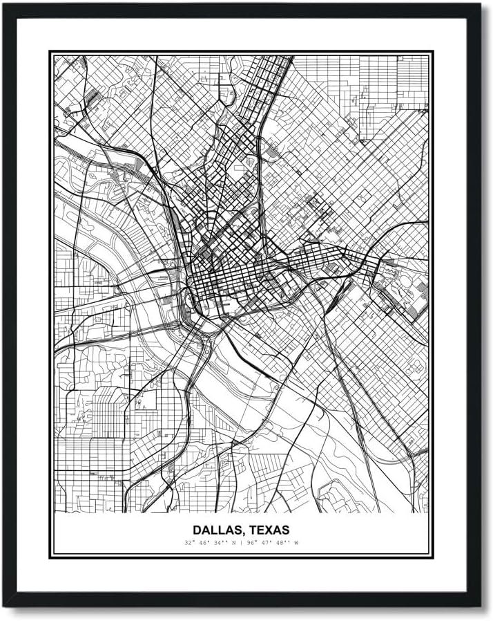 Susie Arts 8X10 Unframed Dallas Texas Wall Art Metropolitan City View Abstract Street Map Art Print Poster Wall Decor Home Office sdm024