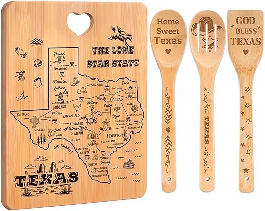 Texas Cutting Board & Spoons Set – Unique Texas Gifts