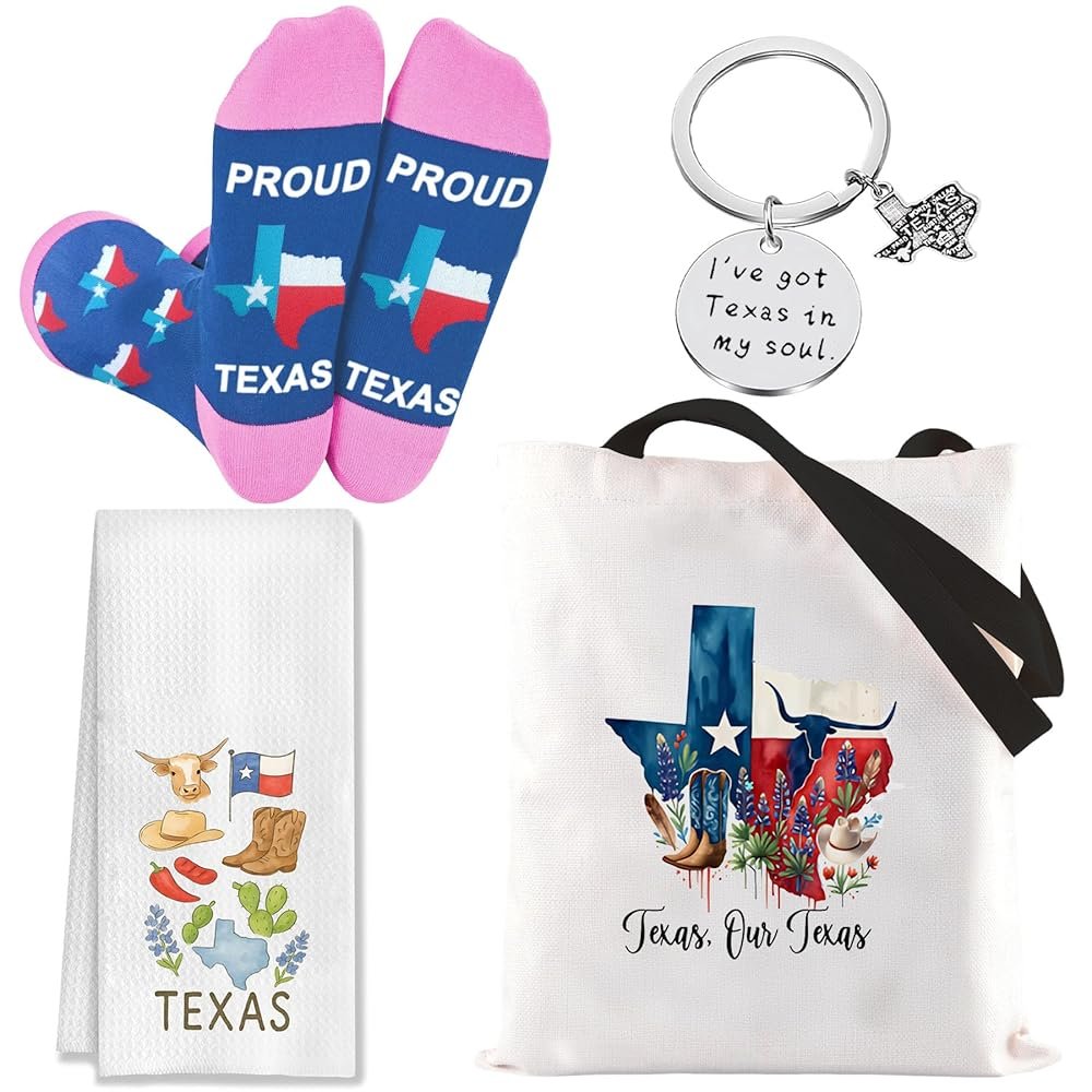 - Ideal Gift Set for Texas State Lover 🎁 Are you looking for a unique gift for Her? This adorable Texas State -themed gift set includes cozy socks ,a tote bag, a Kitchen Towel and a keychain. It’s the ideal surprise for Texas State Lovers in your life.