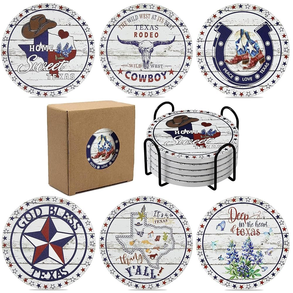 - TEXAS DESIGN:These coasters are designed with various Texas patterns,which is a great and unique Texas themed gifts for Texas lovers.Well-designed Texas coasters are not only practical kitchen accessories,but also a personalized home decor.Bring more whimsy to Texas lovers.