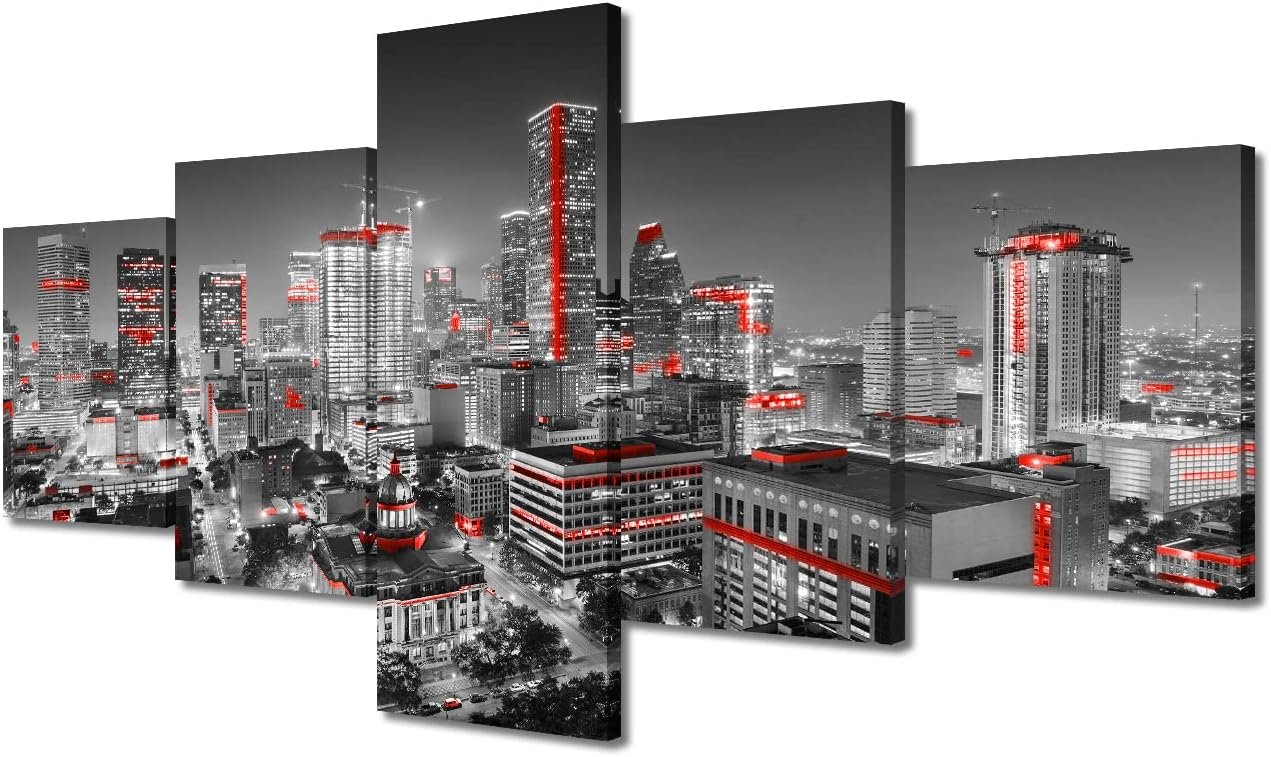 TUMOVO Houston Texas Skyline Black and White Wall Art Cityscape Panorama Pictures for Bedroom 5 Piece City Building House Decorations Skyscraper Posters and Prints Framed Ready…
