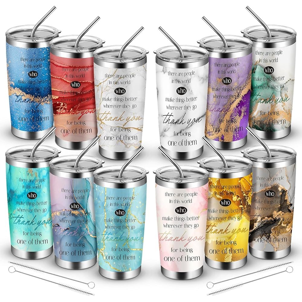 Uiifan 12 Pcs Housekeeping Appreciation Gifts 20 oz Employee Appreciation Gifts Thank You Tumbler Coworkers Inspirational Tumbler Marble Stainless Steel Mug with Straws for…
