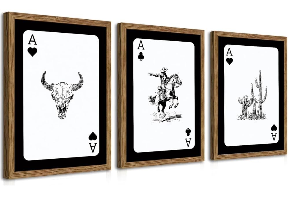 • Western Cowboy Room Decor: Each piece of western cowboy playing card wall art measures 12×16 inches.