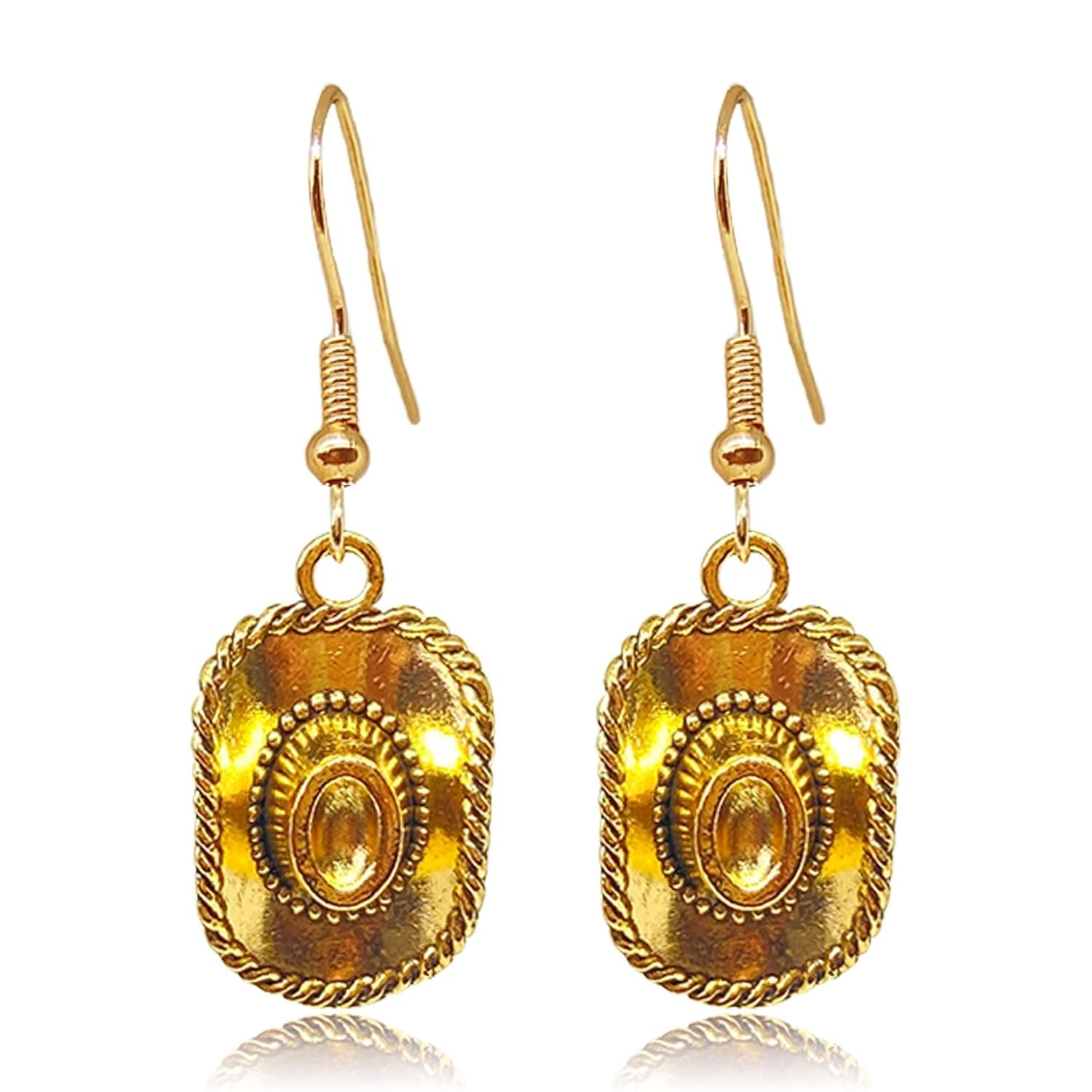- Fashion jewelry: Southwestern Style,This earrings are designed as western cowboy cowgril hat . Trendy and Unique design makes it outstanding!It is the perfect addition to your western country wardrobe. A great holiday gift she’ll wear year around.Cowgirl hat earrings style match your western outfit