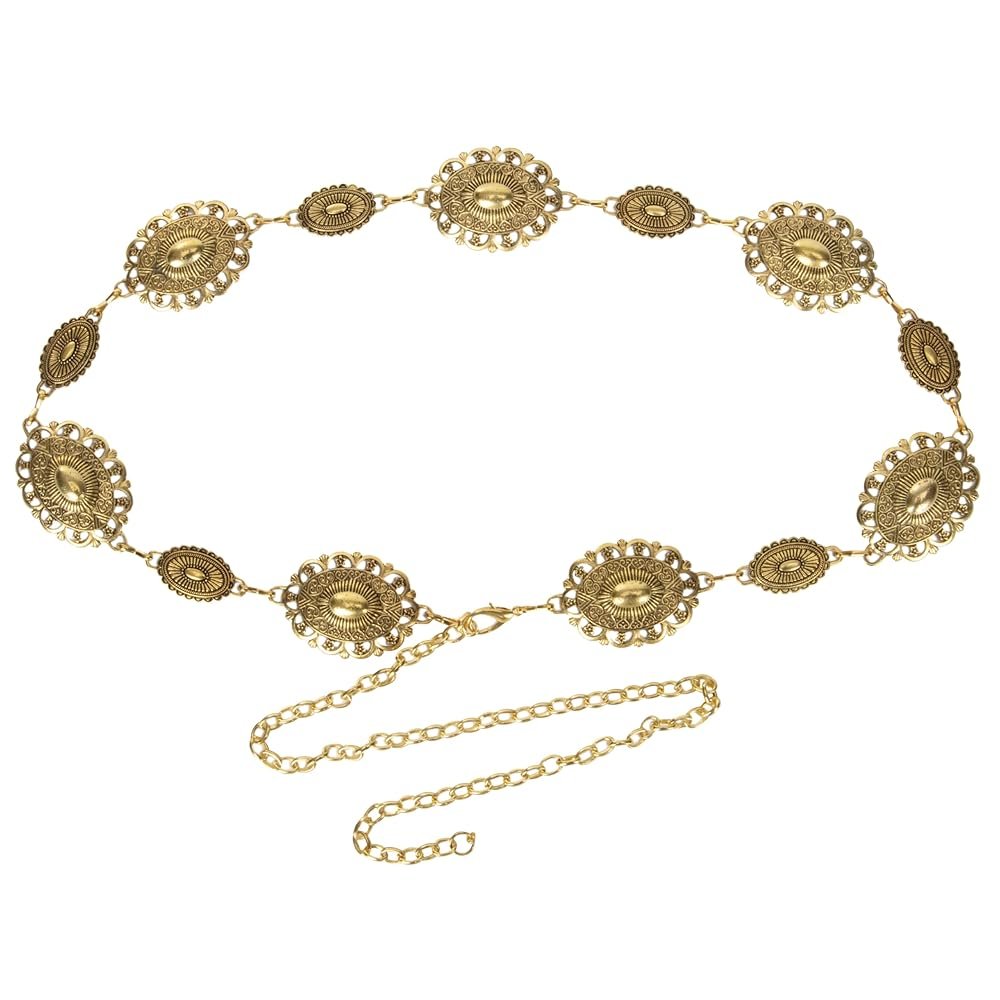 Women-Western-Oval-Concho Chain-Belt – Adjustable-Boho-Metal-Waist Chain-Belt-Country-Cowgirls Belts for Dress Jeans