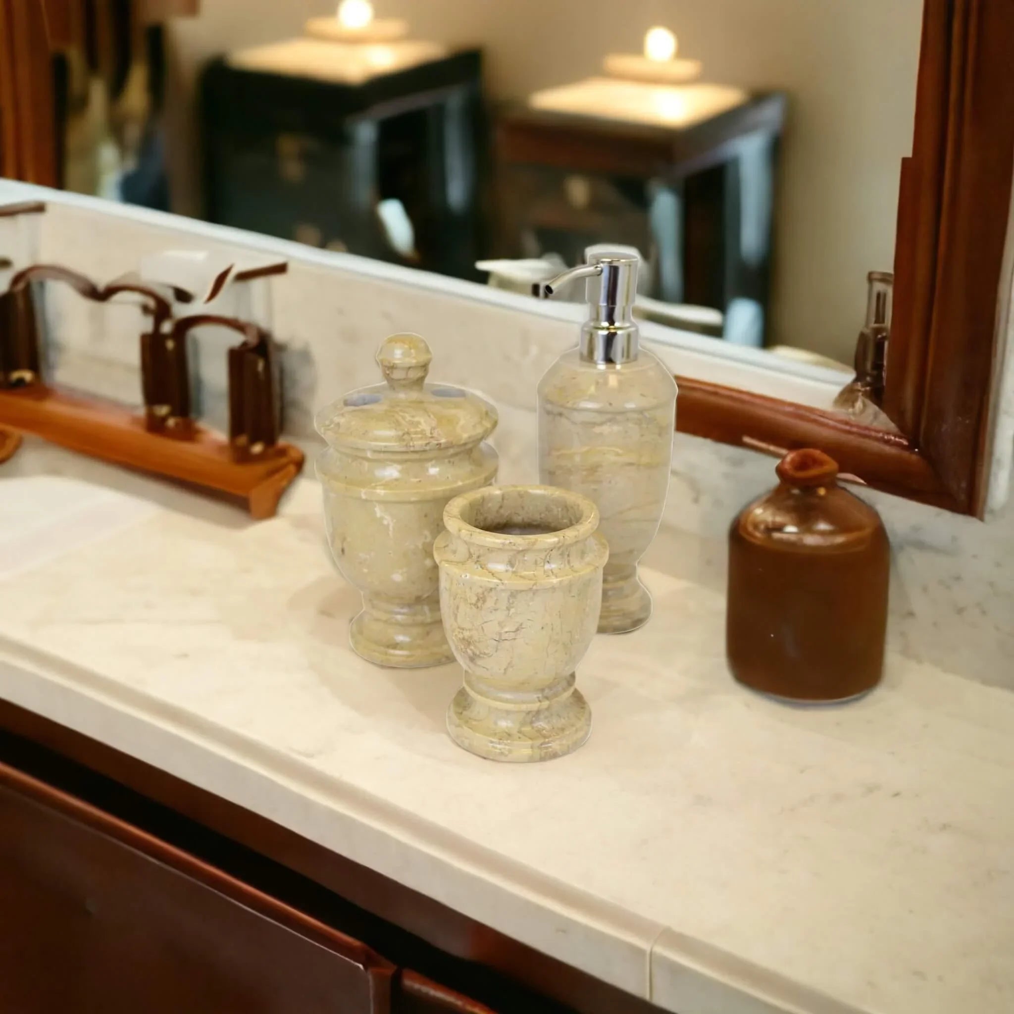 3 Piece Bathroom Accessory Set- Elegant Bathroom set in Sahara Beige Marble