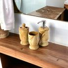 3-Piece Bathroom Accessory Set - Teak Marble