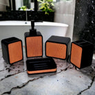 This exquisite 5-Piece Bathroom Set of Wood Finish is artfully crafted with premium materials, including a stainless steel lotion/liquid soap dispenser that promises years of resilient use. The light brown wood panel finish is designed to complement any bathroom décor, making this set an ideal addition to home or commercial spaces alike. Enjoy the classic, timeless elegance this bathroom decor set brings to any bathroom decor.
