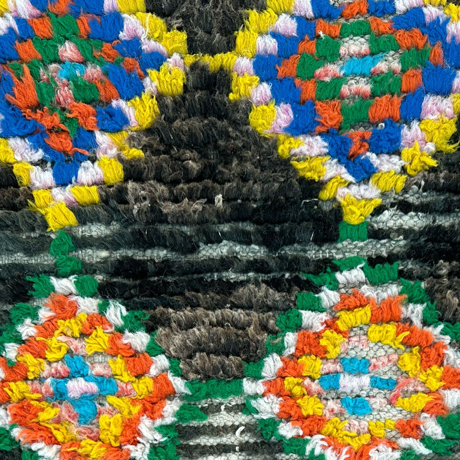 - Hand-knotted in the Atlas Mountains of Morocco using traditional Amazigh weaving techniques.