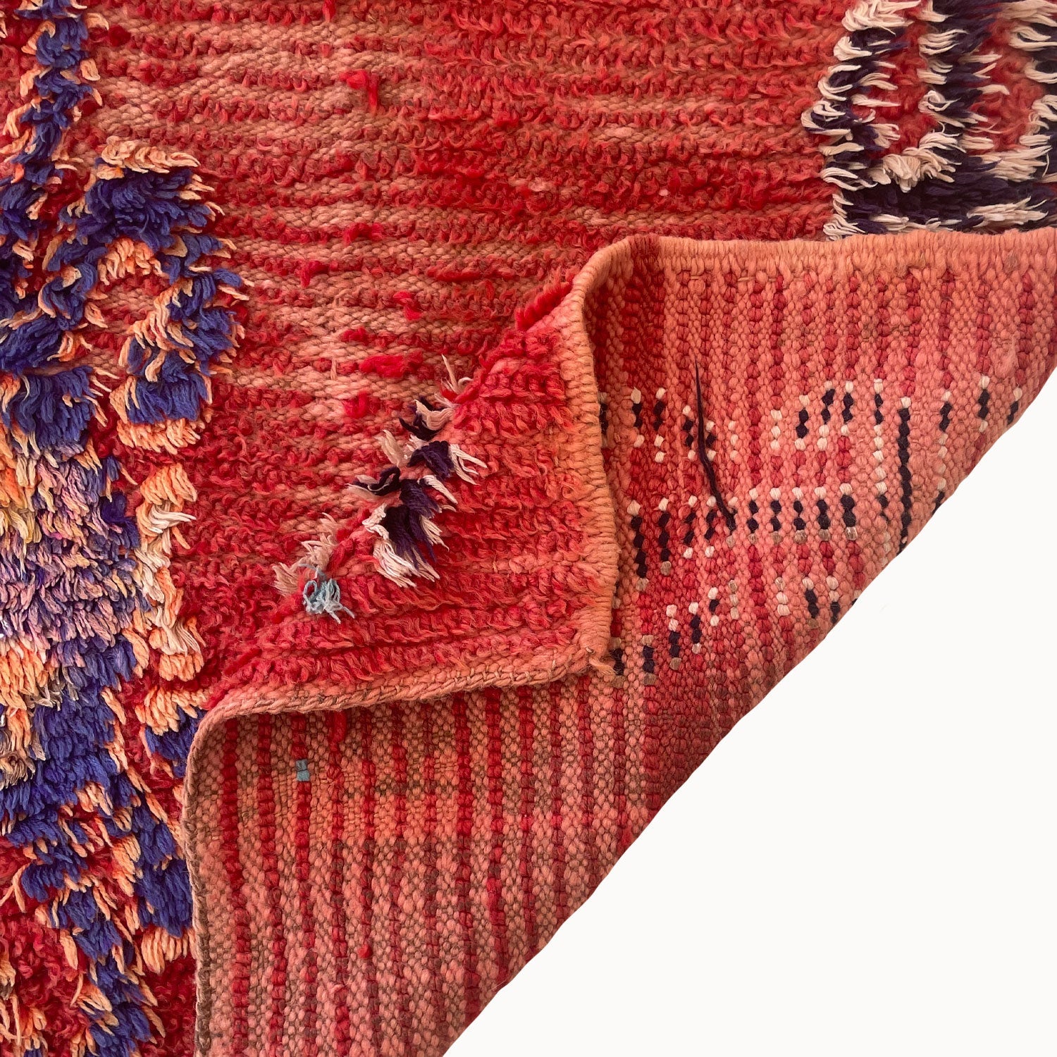 This exquisite Awal Vintage Moroccan Rug showcases a beautiful blend of rich reds and blues, bringing warmth and character to any space. Handwoven from wool, its intricate patterns and vintage charm make it a stunning accent piece that tells a story of artistry and tradition.