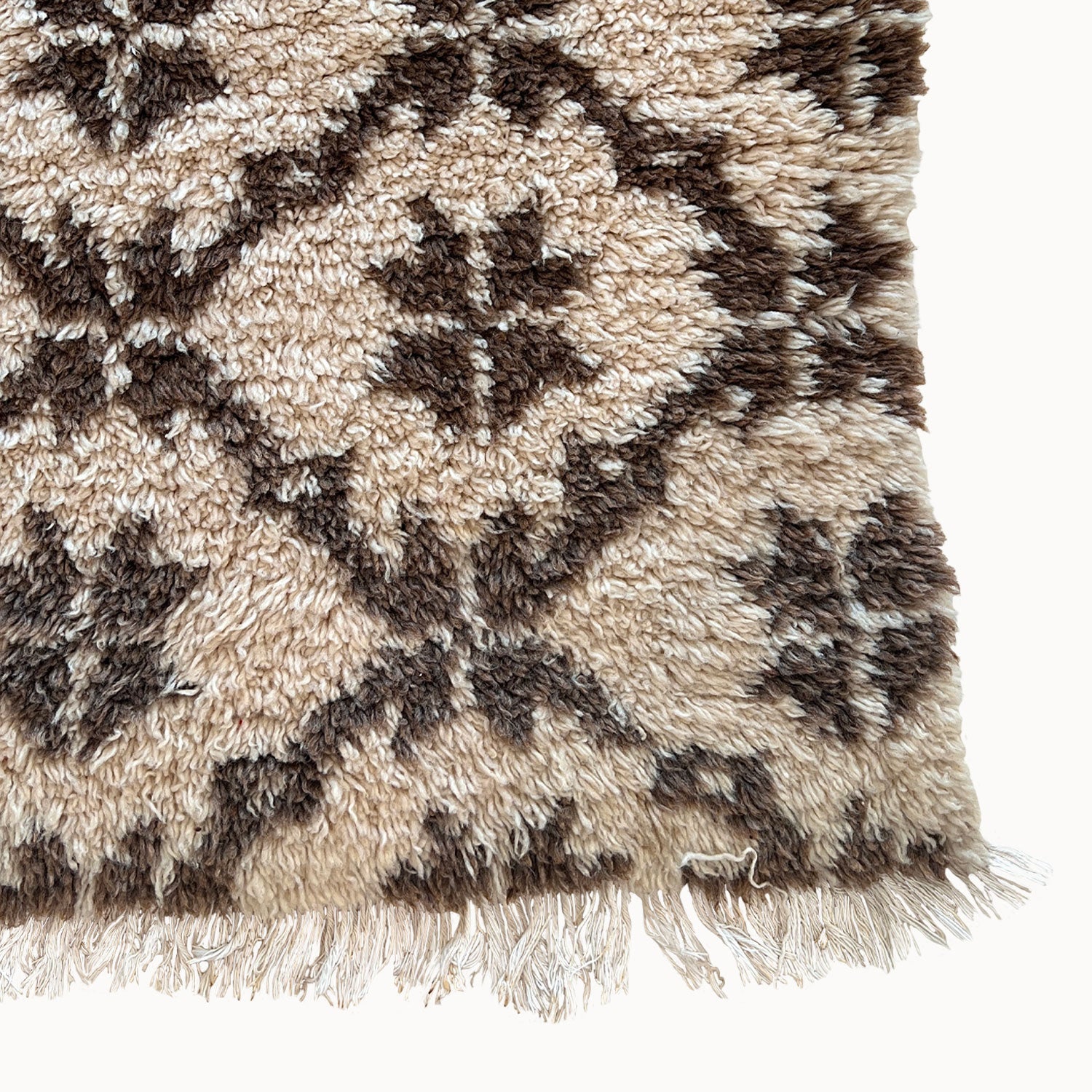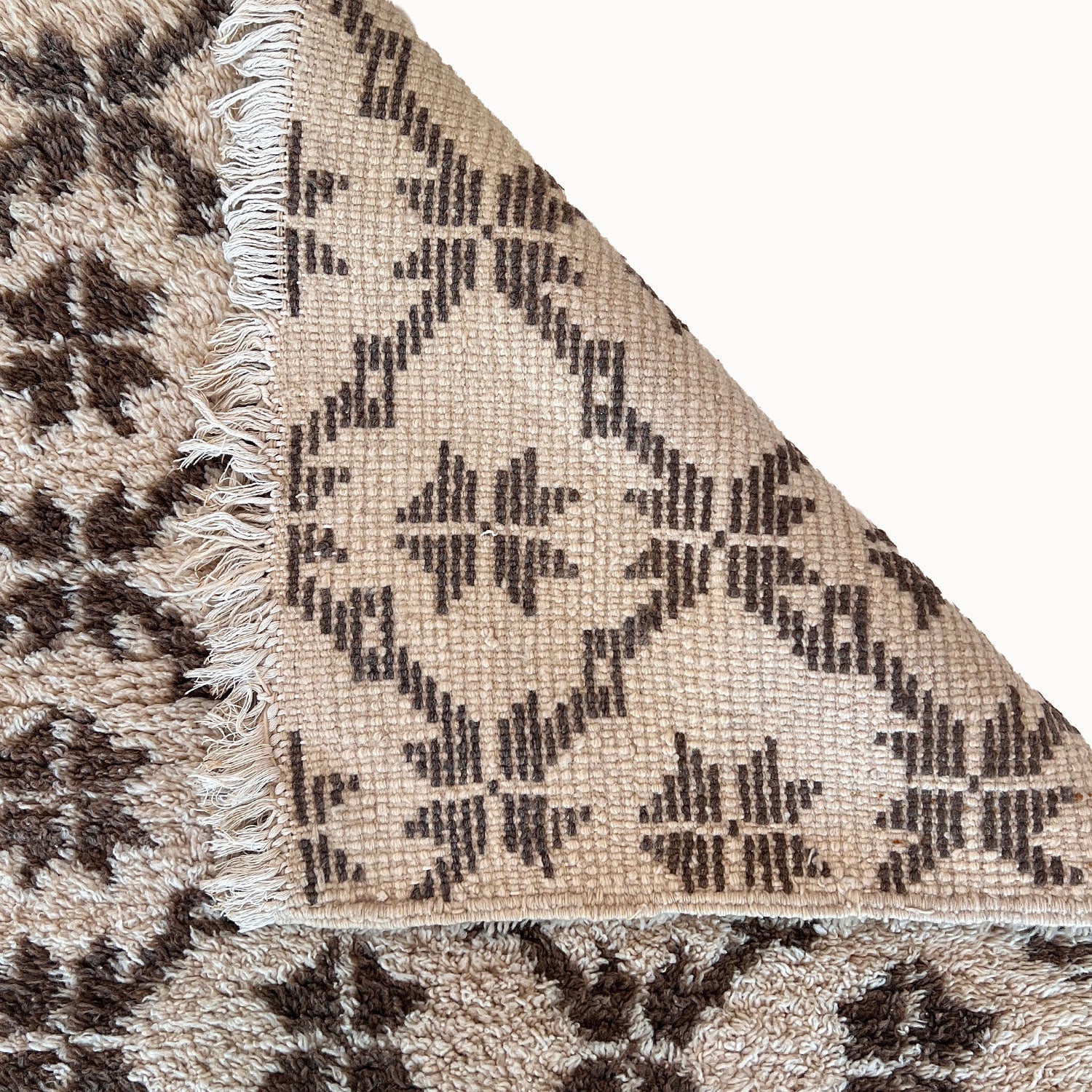 - Hand-knotted in Morocco using the traditional techniques of Amazigh tribes
