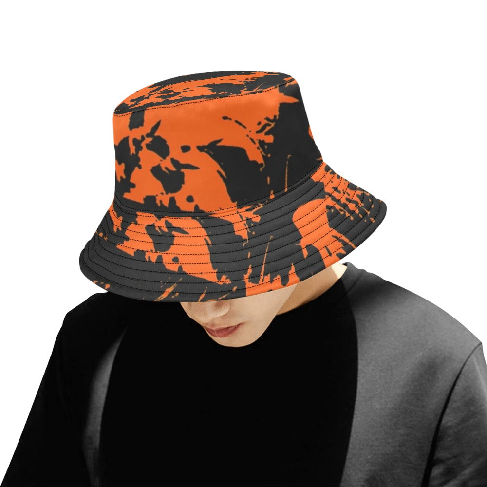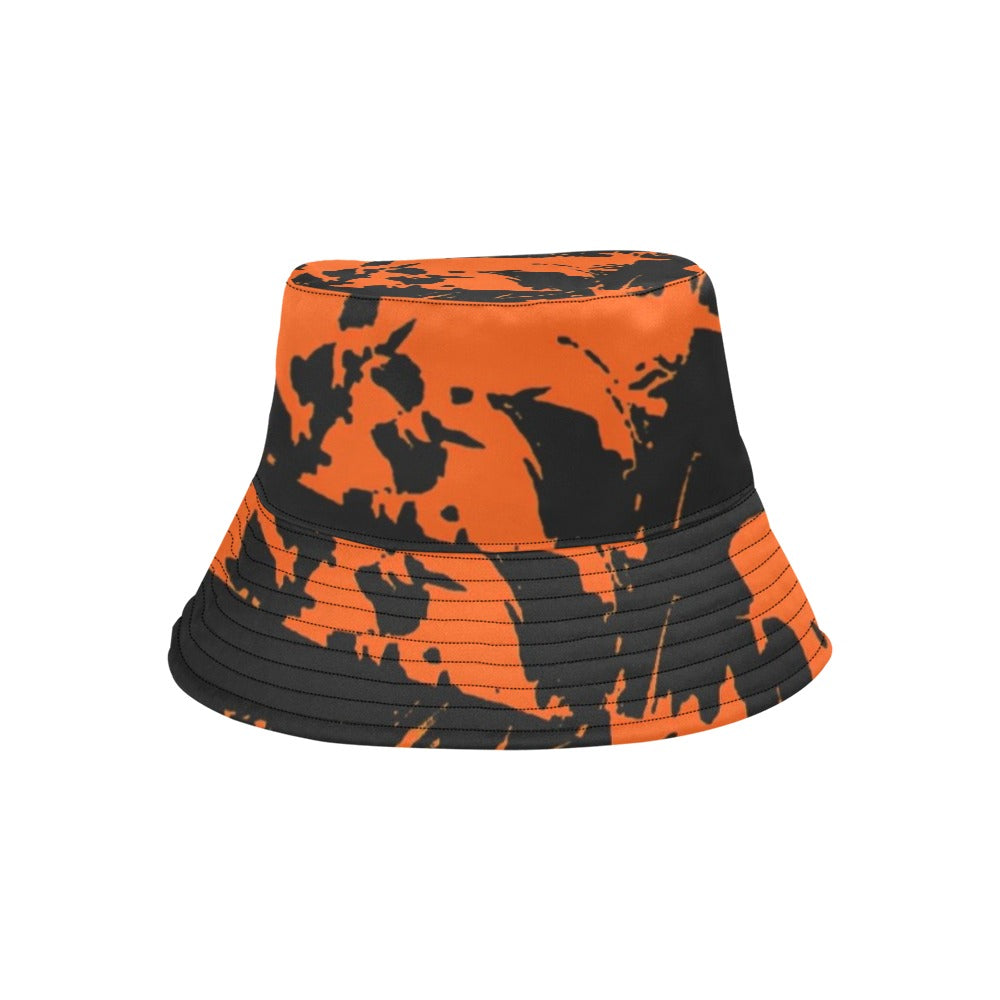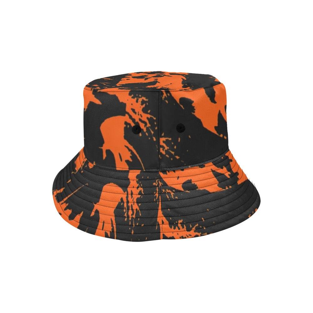 BigTexFunkadelic Black and Orange Spooky Paint Splatter Graffiti Bucket Hat