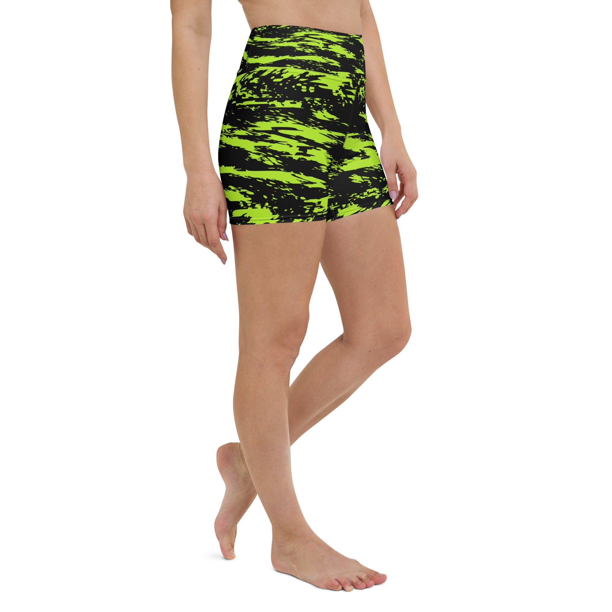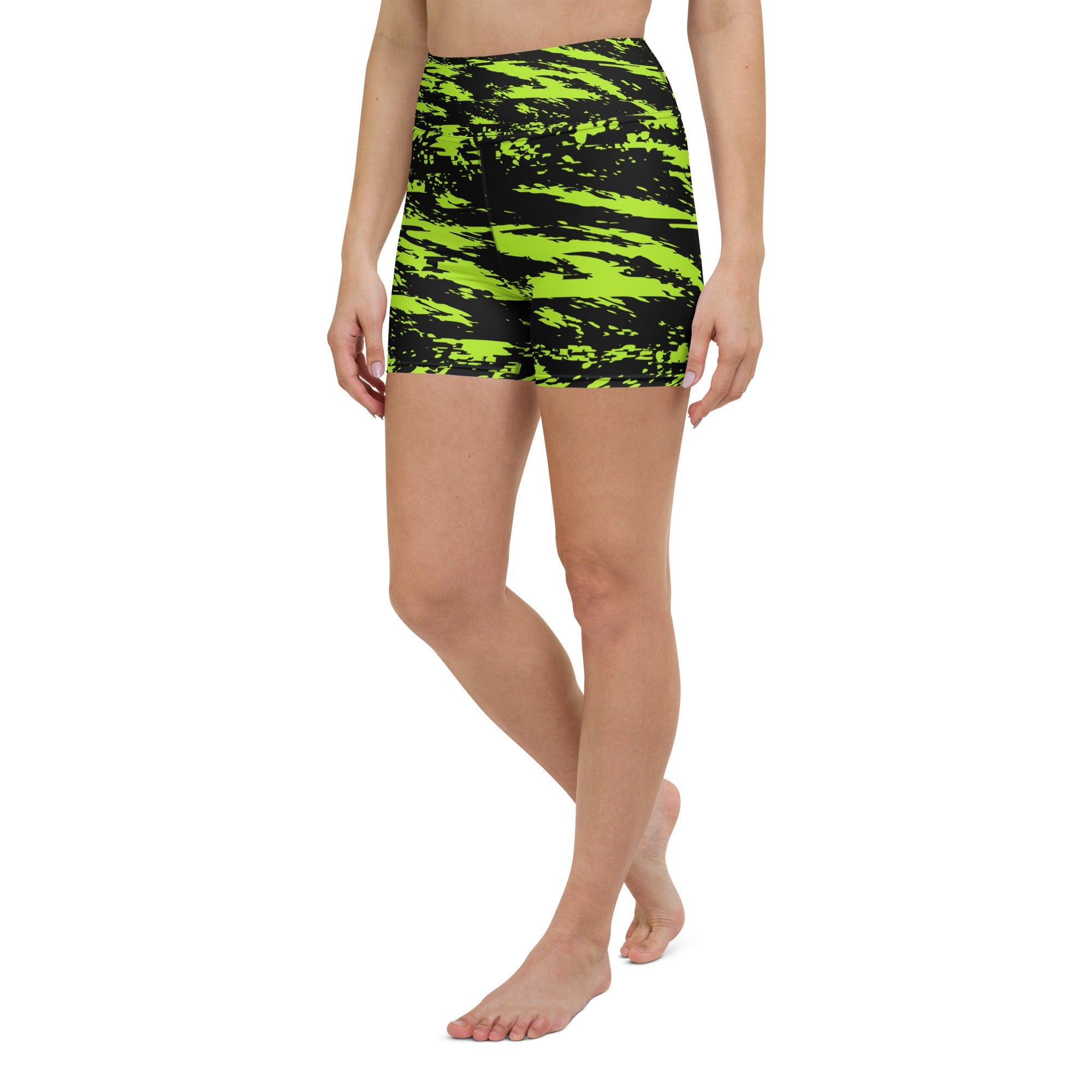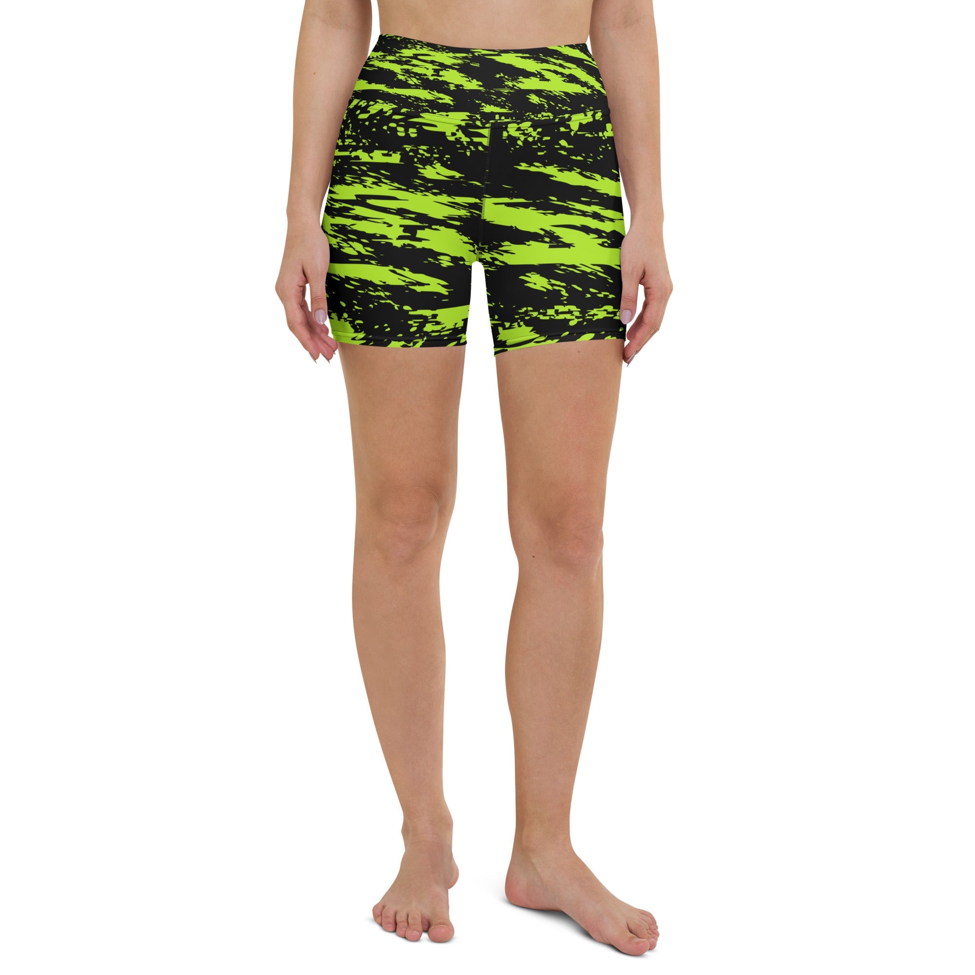 Get ready to move in these Black Lime Bolt Glitch Yoga Shorts from BigTexFunkadelic. Designed with both comfort and style in mind, these shorts are crafted from soft microfiber yarn that feels great against your skin, making them ideal for workouts or dance festivals. The chic design and high waistband ensure you stay fashionable while active.