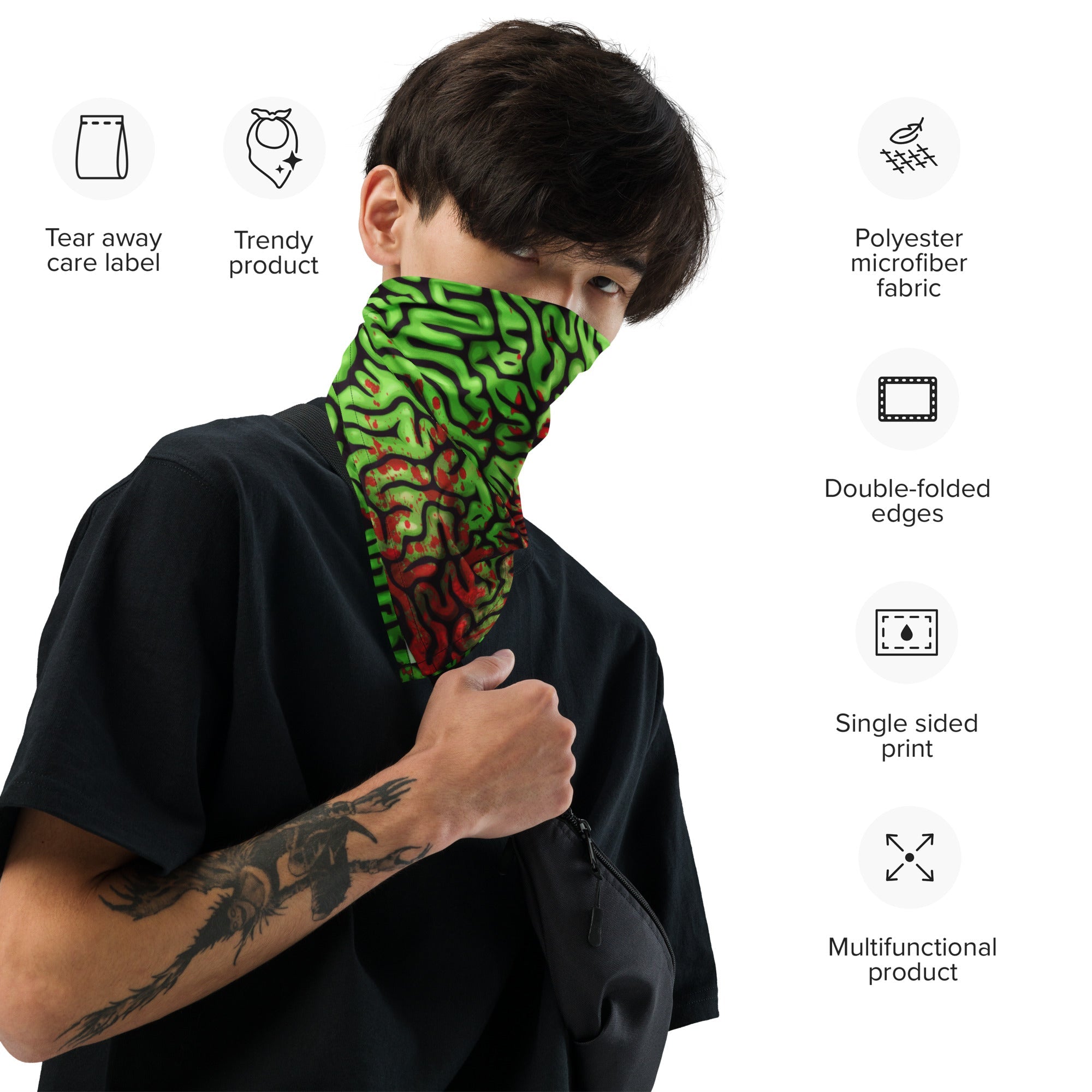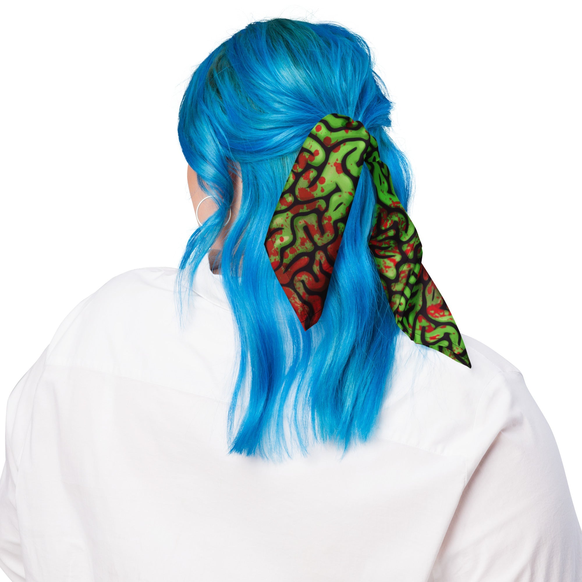 This vibrant Bloody Green Brains Bandana is perfect for adding a quirky flair to your Halloween ensemble. Whether you wear it as a headband or a necktie, it elevates your festive look while showcasing your love for all things spooky.