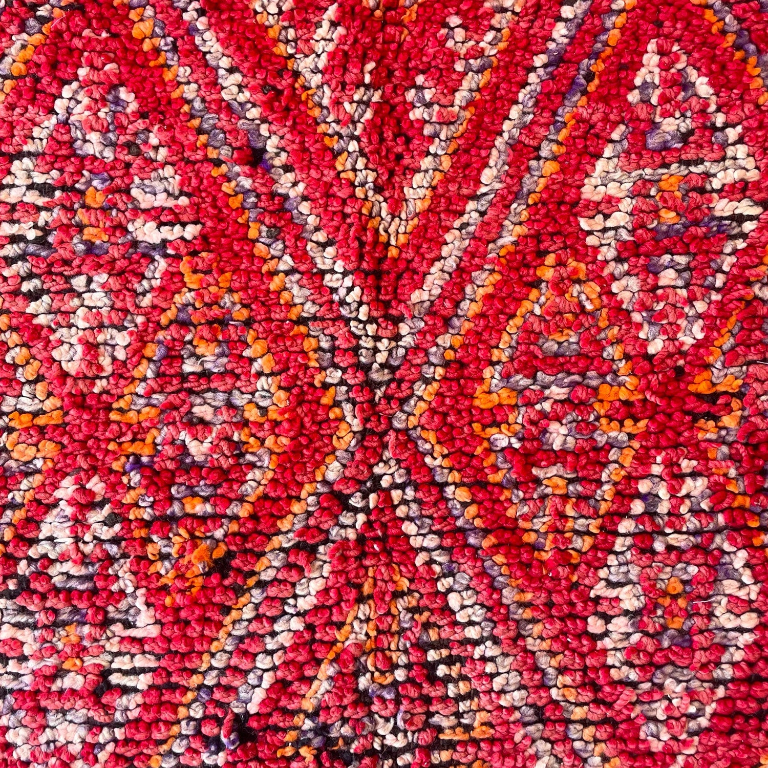 - Hand-knotted in the Atlas Mountains of Morocco using traditional Amazigh weaving techniques.