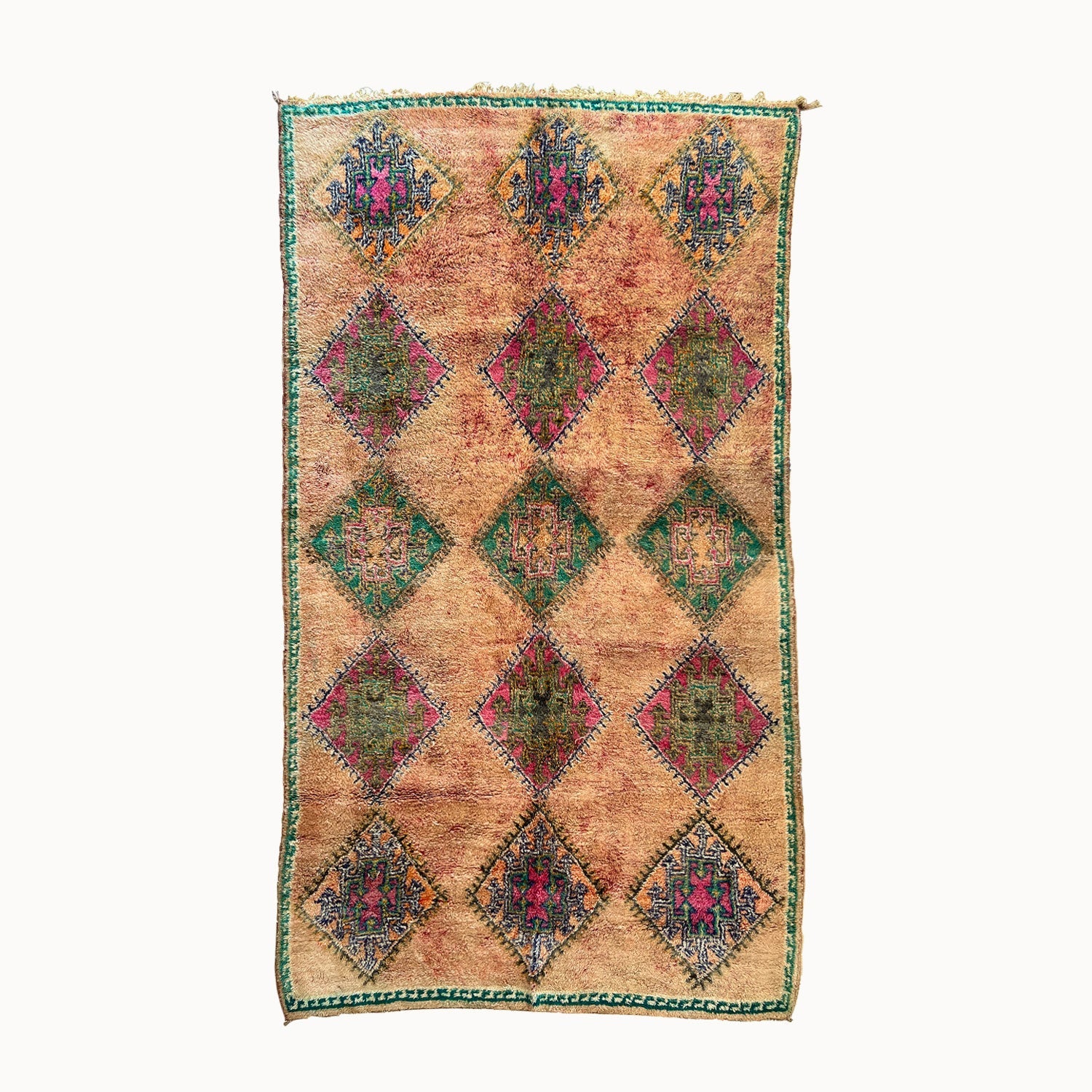 - Due to the vintage and handmade nature of our rugs, there may be minor imperfections and signs of wear. We believe this adds character to the piece and lends to each rug being truly one of a kind.