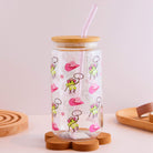 Our 16 oz glass cup set is the perfect blend of cute, practical, and eco-friendly. Each set includes a clear glass cup featuring one of our signature designs, a matching color glass straw for extra charm, a sturdy metal straw for when you need something stronger, and a brush cleaner to keep everything fresh and ready to use again and again.