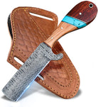 Gear up for the season with our Custom Handmade Bull Cutters with Damascus Steel Blade, a must-have for ranch hands, leatherworkers, and collectors alike. This fall and winter, take on every task with confidence thanks to a 4-inch razor-sharp Damascus steel blade that ensures precision, durability, and edge retention built to last.