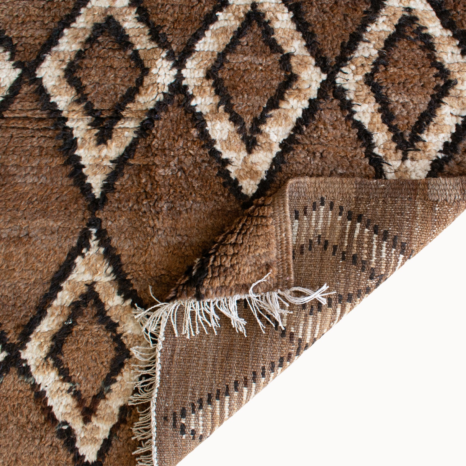 - Hand-knotted in the Atlas Mountains of Morocco using traditional Amazigh weaving techniques.