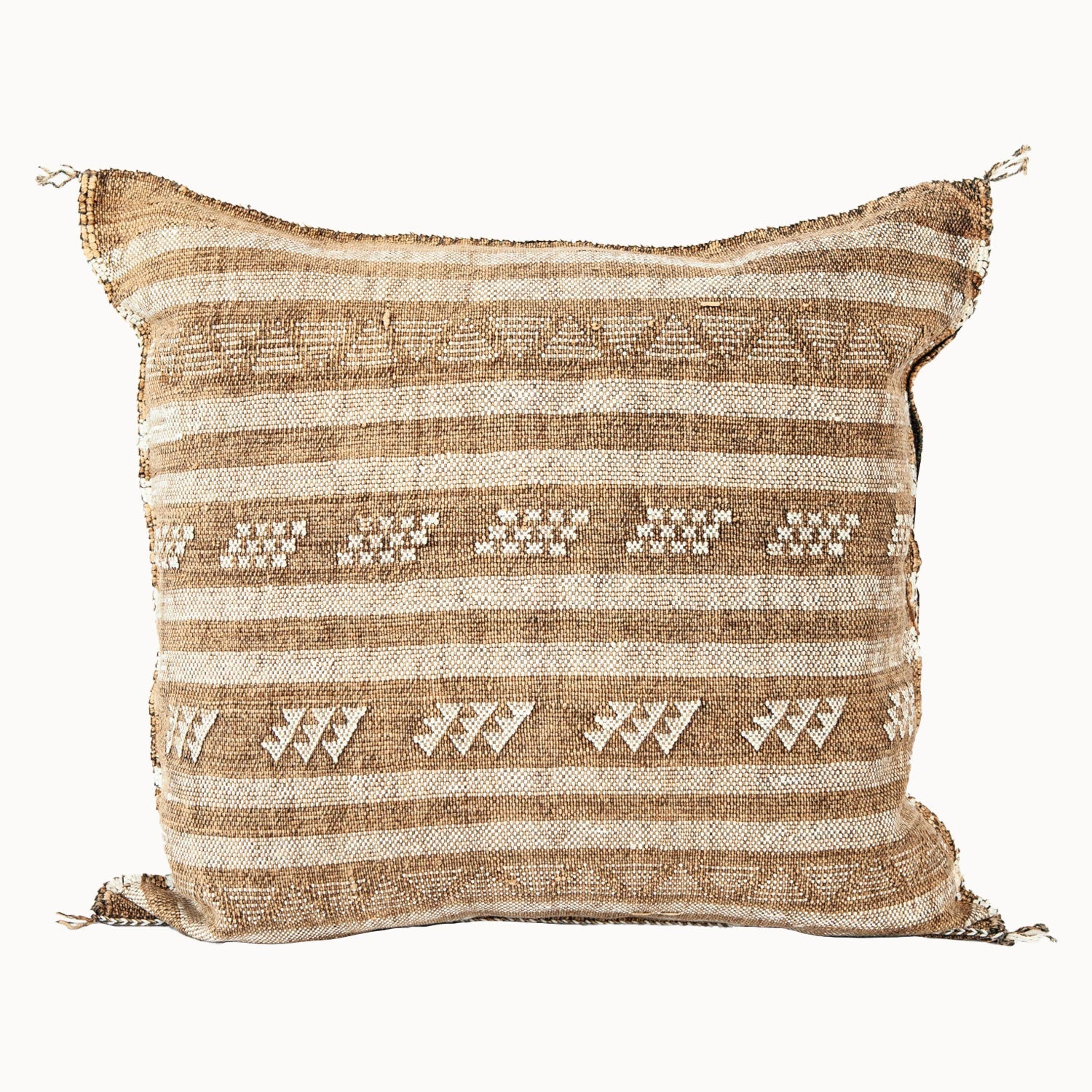 These unique pillows are very smooth to the touch and are handwoven first and then finished with symbols hand embroidered into each pillow. No two pillows are exactly alike.