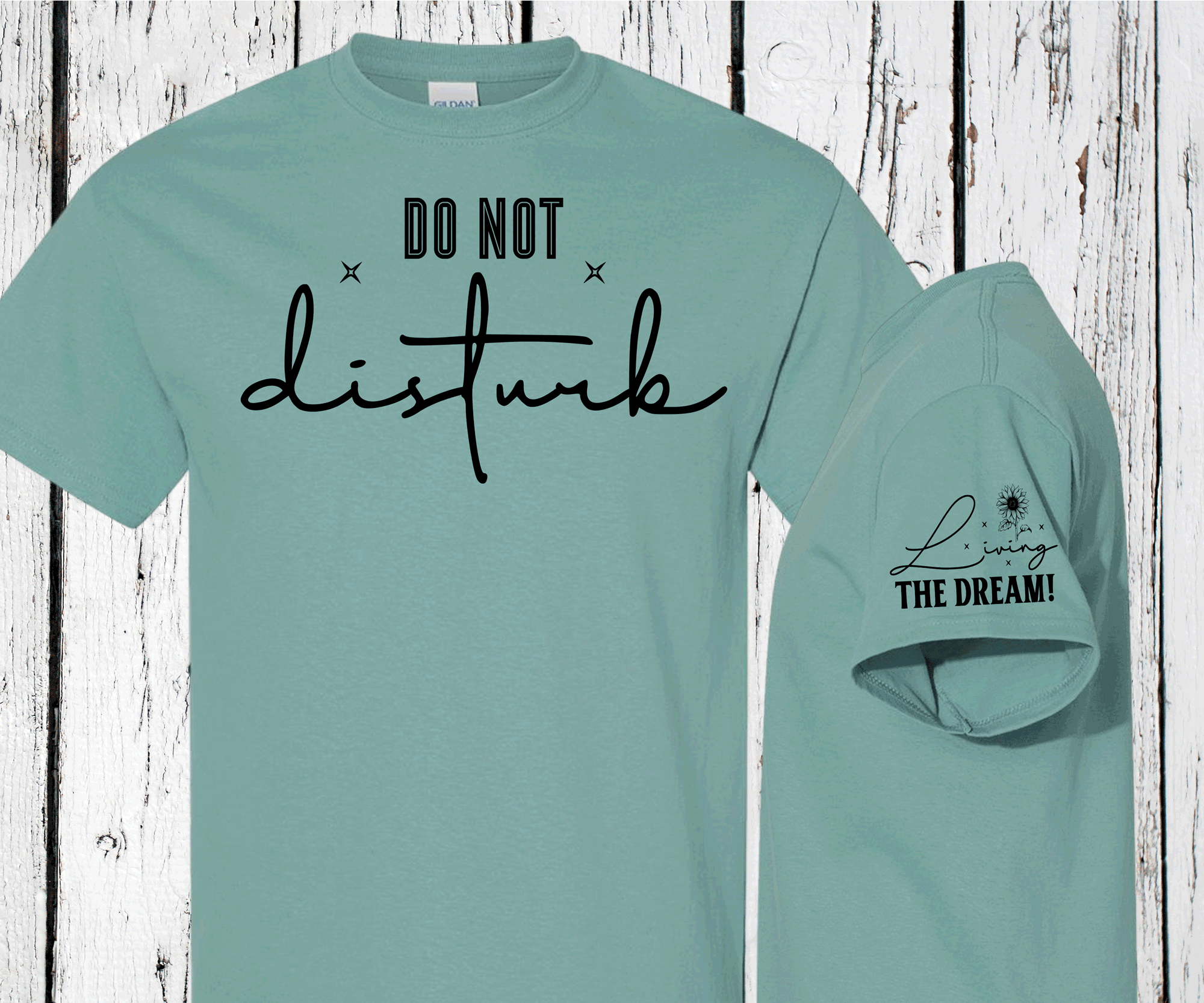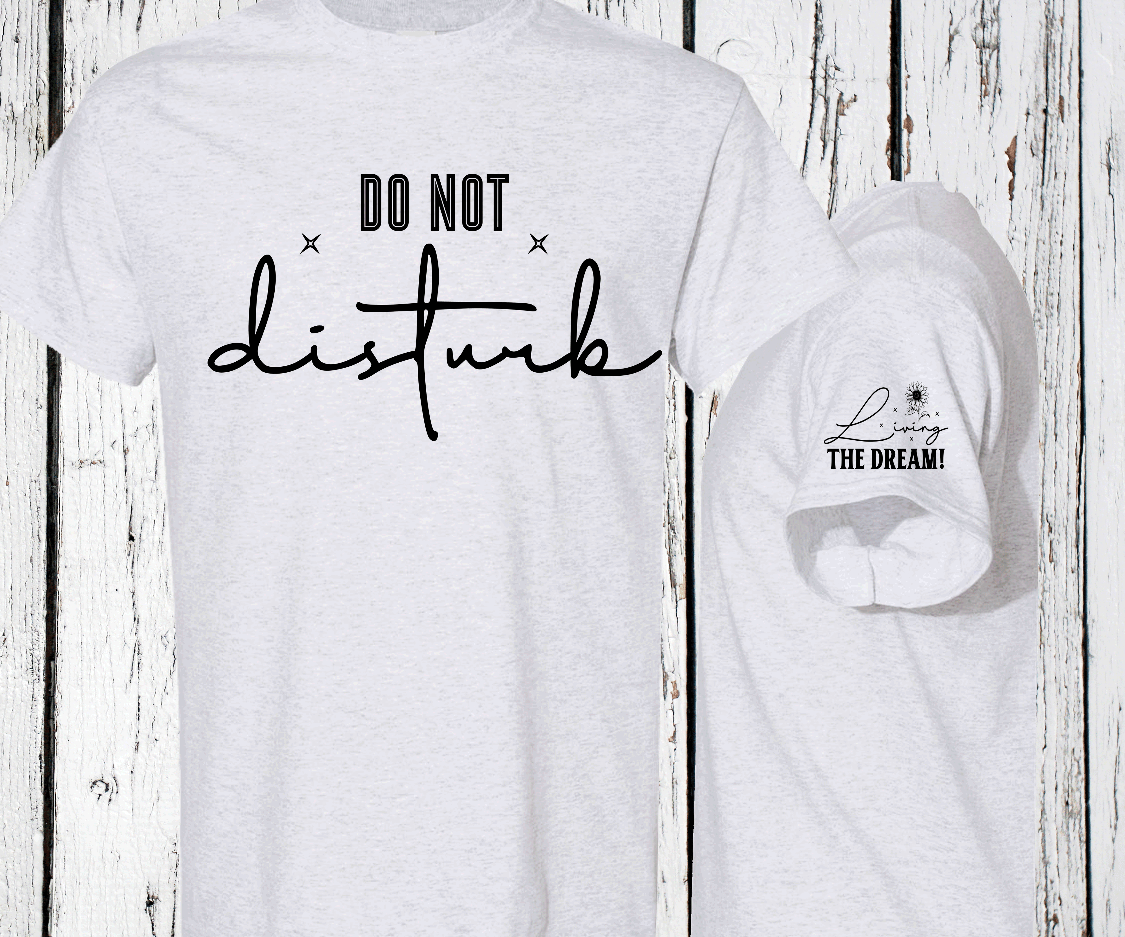 This shirt features a casual design with the words "Do Not Disturb" prominently displayed, conveying a message of privacy or personal space. Below that, the phrase "Living the Dream" is printed, suggesting a state of fulfillment or satisfaction with one's life