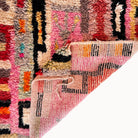 Discover the Elamria Contemporary Moroccan Rug, a hand-knotted wool rug that blends modern style and bohemian flair. This runner's bold, vivid and captivating colors will instantly revive your living space, making it a vibrant and expressive centerpiece!