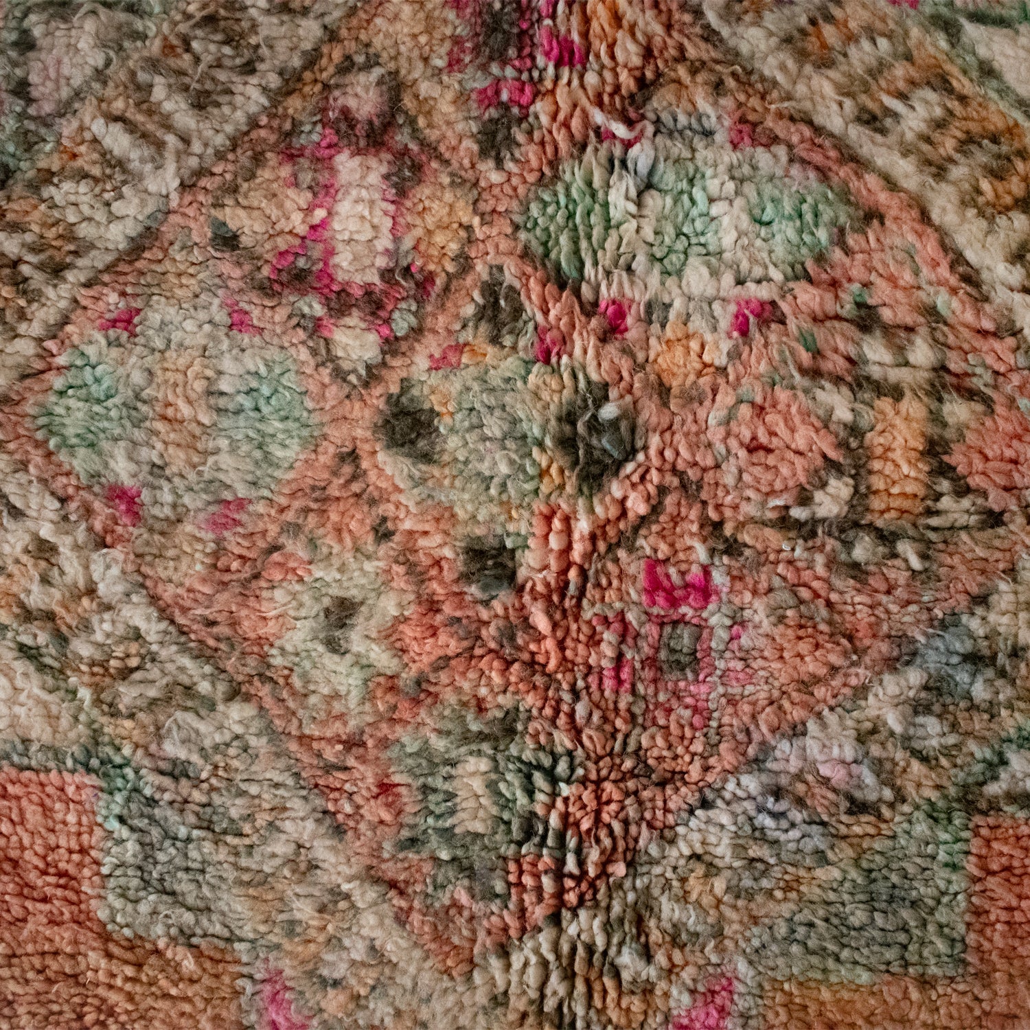Transform your living space with the Eliana Vintage Moroccan Rug, where vibrant pink hues intertwine to create a stunning focal point. This exquisite piece, aged gracefully over 30 years, offers a rich texture crafted from 100% hand-spun wool, evoking warmth and elegance in any room.