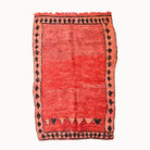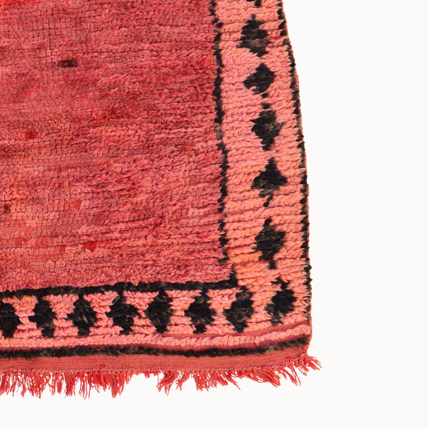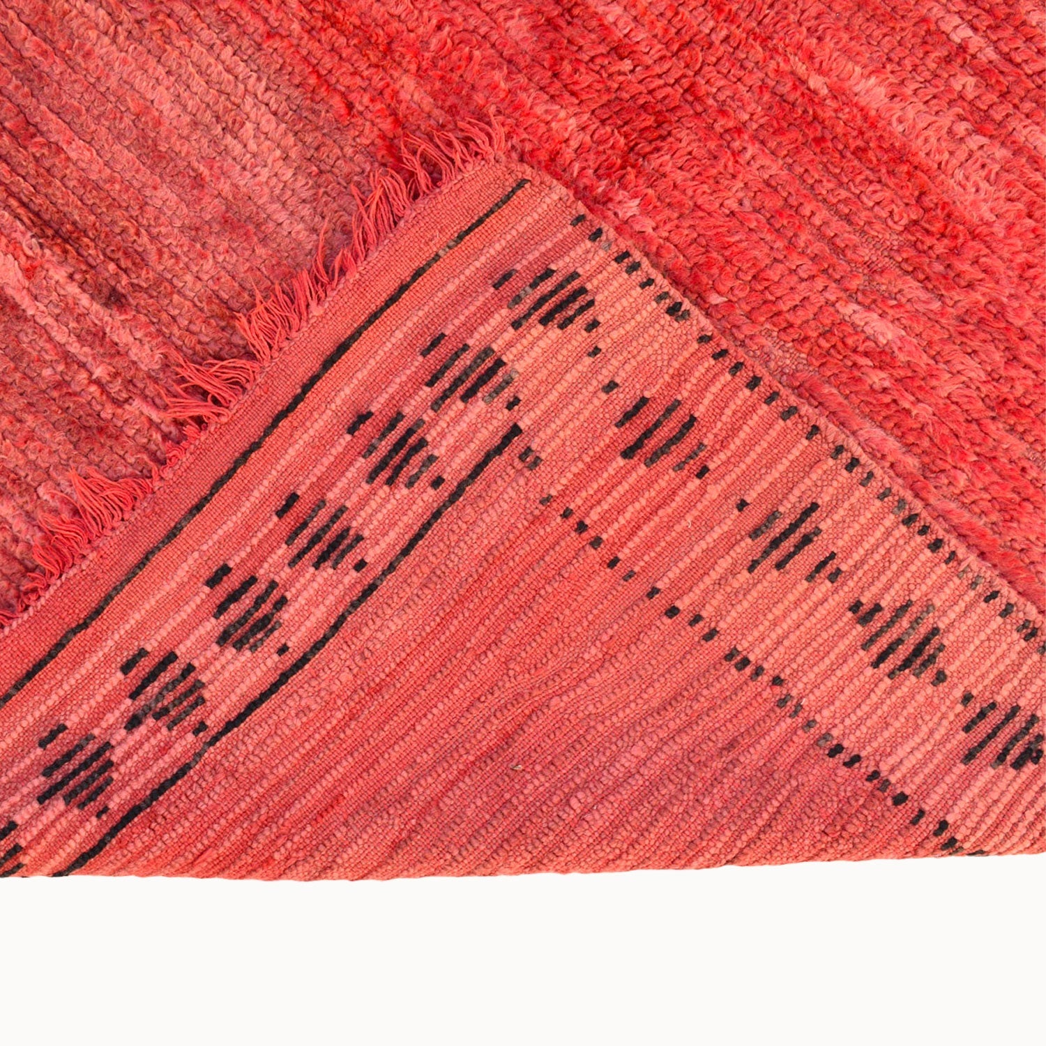 Experience the beauty of traditional craftsmanship with the Fatima Vintage Hand-Knotted Moroccan Rug. Rich reds and blacks intertwine in a design that not only beautifies your home but also brings a touch of cultural heritage to your decor.