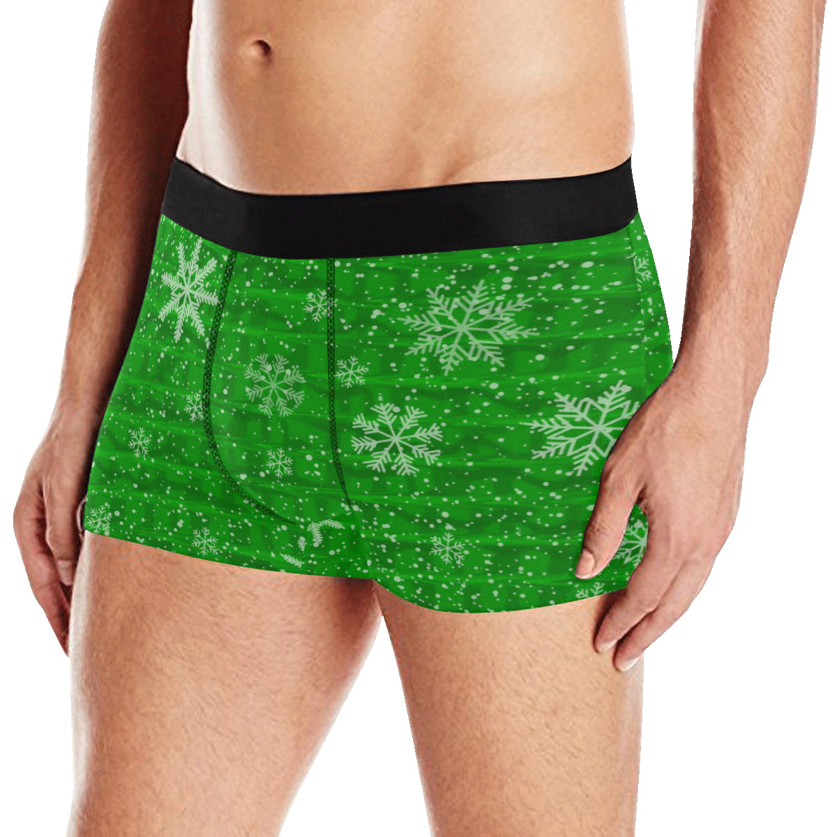 Embrace the festive spirit with these vibrant green boxer briefs adorned with cheerful snowflakes. Crafted for comfort from elastic 100% polyester, they promise a delightful fit that will keep you warm and cozy throughout the holiday season.