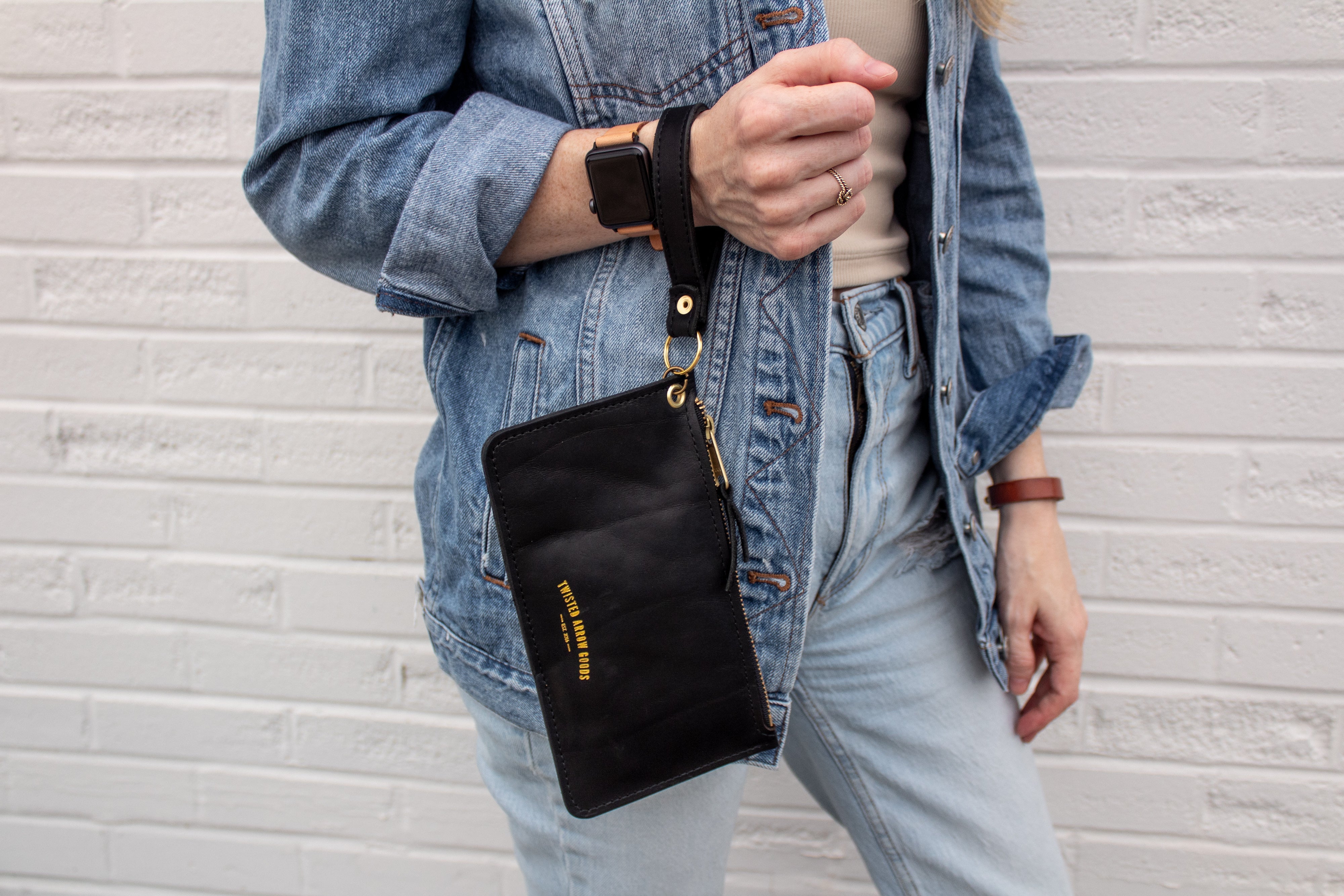 The Hannah Wristlet was created for the girl who cares about the essentials. This simple zip-top pouch is the perfect size to stash a phone, card wallet, and lip balm so you can get ready to focus on your next adventure. The detachable wrist strap also makes it a great companion to our Hannah Tote, for when the journey requires a bigger load. Whether you carry light or want a way to organize your bigger bag, this wristlet is the perfect addition to your closet.