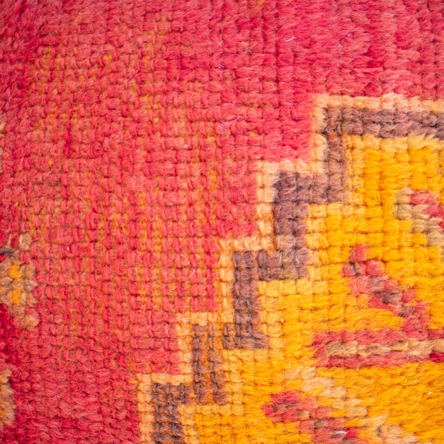 Each Moroccan Taznakht Upcycled Rug Pillow is a one-of-a-kind creation, handcrafted from fragments of vintage rugs that bring vibrant colors and rich textures to your home. This pillow not only adds comfort but also serves as a testament to sustainable craftsmanship, making it a perfect accent for any decor.