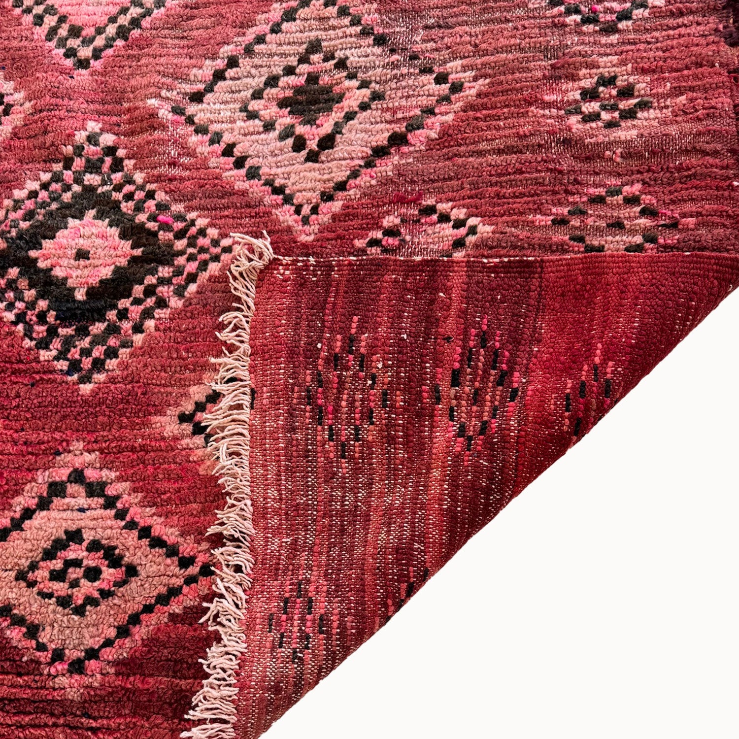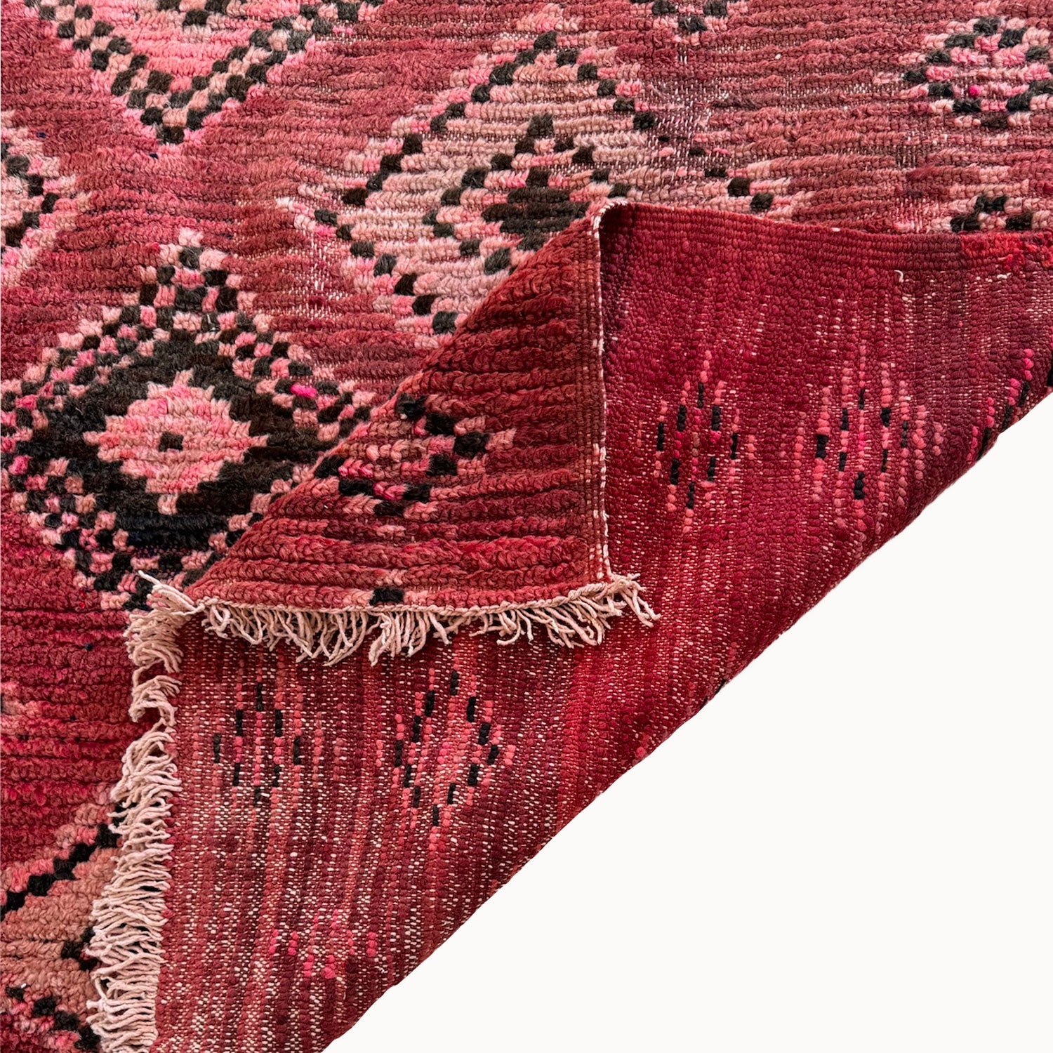 - Hand-knotted in the Atlas Mountains of Morocco using traditional Amazigh weaving techniques.