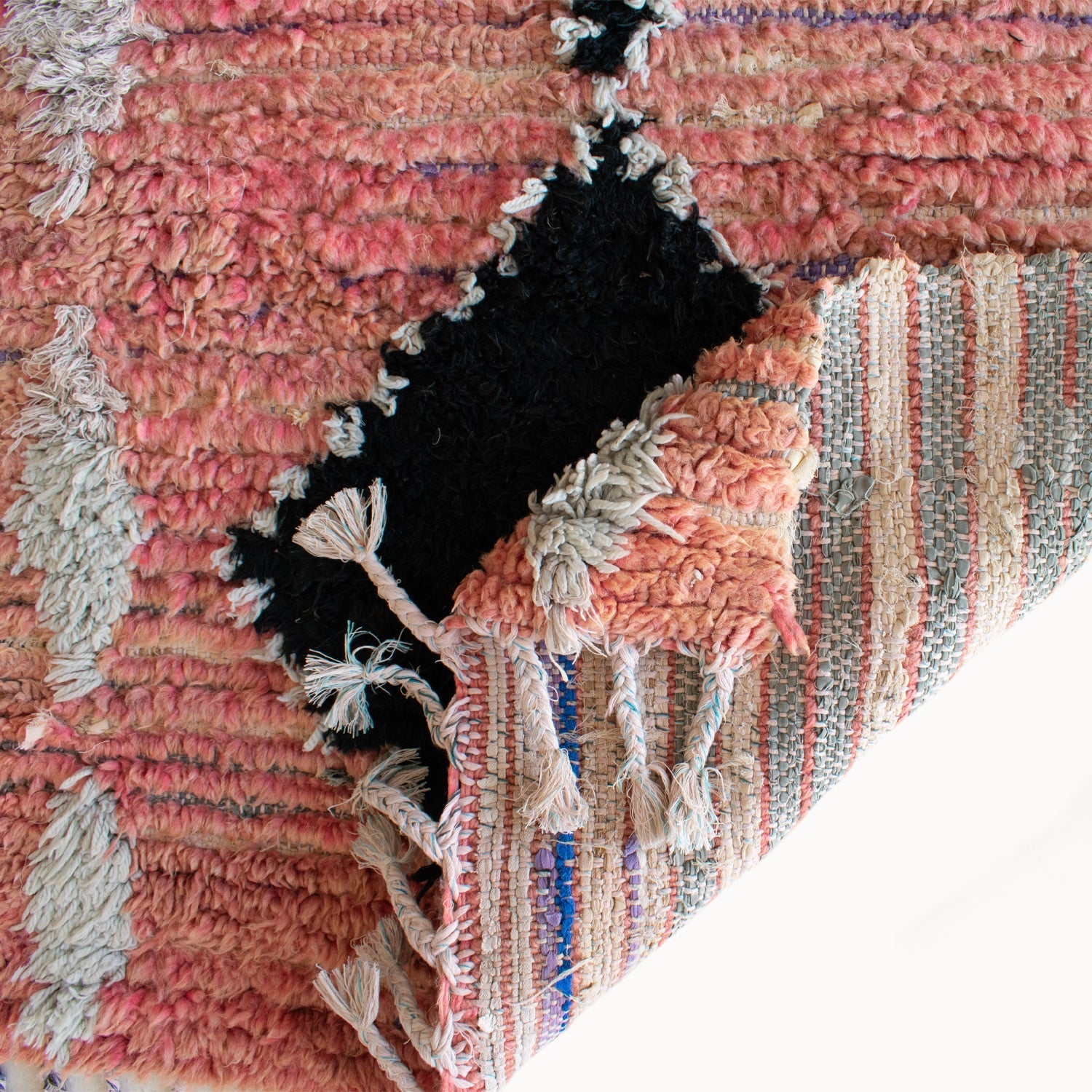 - Hand-knotted in the Atlas Mountains of Morocco using traditional Amazigh weaving techniques.