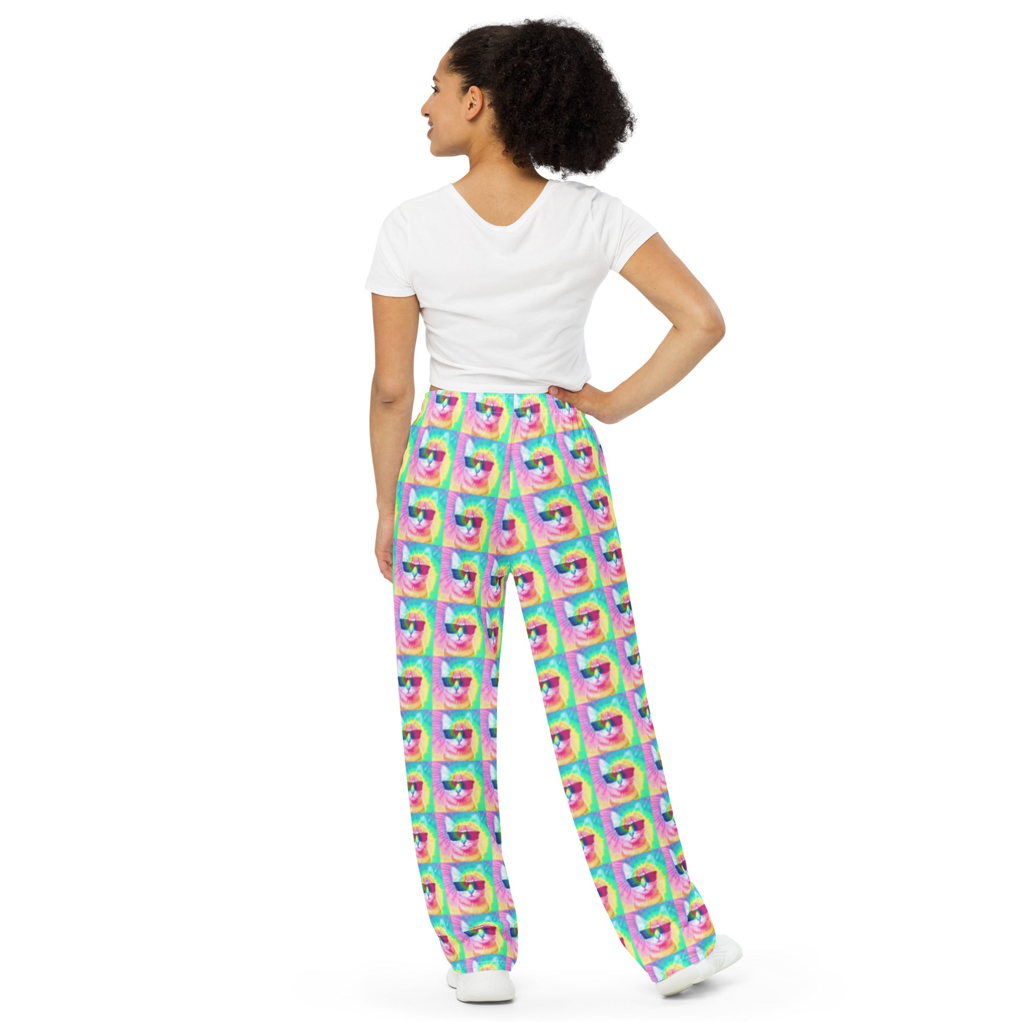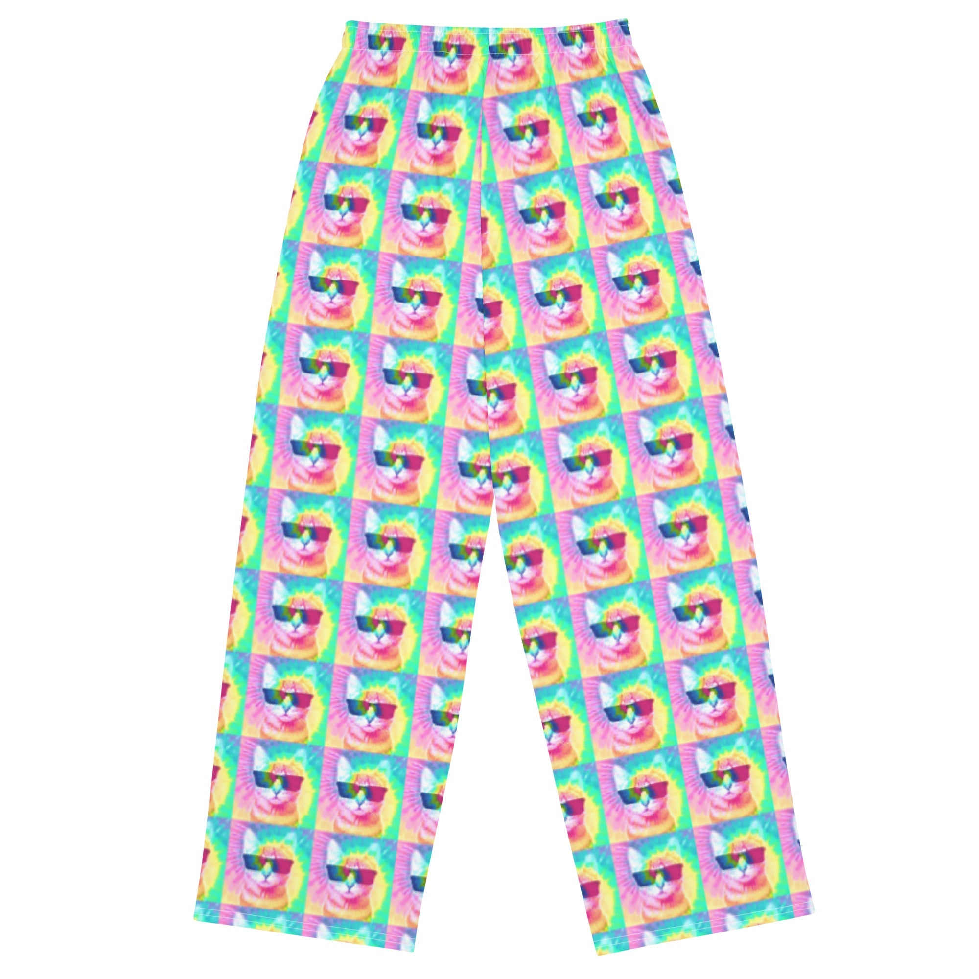 BigTexFunkadelic Pastel Tie-Dye Cat All Over Print Unisex Wide-Leg Pajama Pants with Pockets