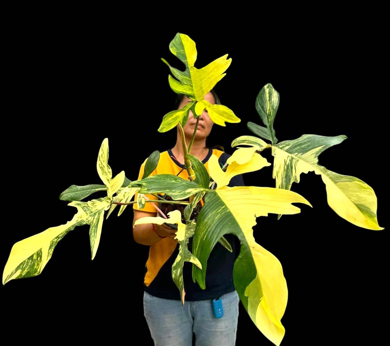 Details: Highly variegated Philodendron Florida Beauty, Large size comes in a 5” pot. Extra Large comes in a Half Gallon Pot!
