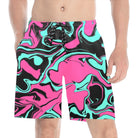 BigTexFunkadelic Pink Turquoise and Black Abstract Melt Swim Shorts