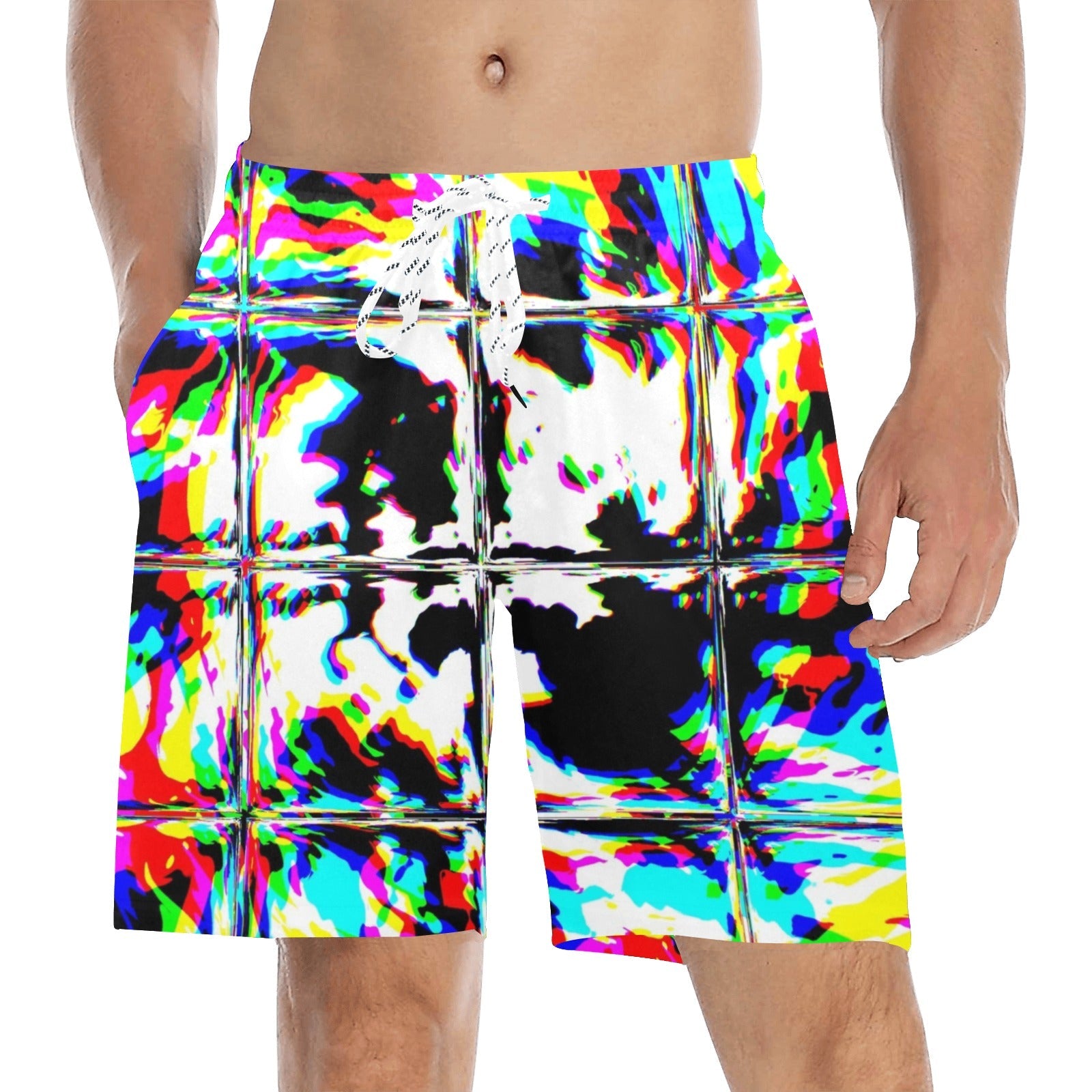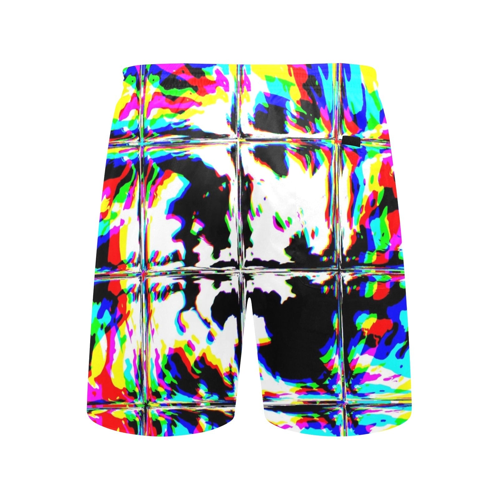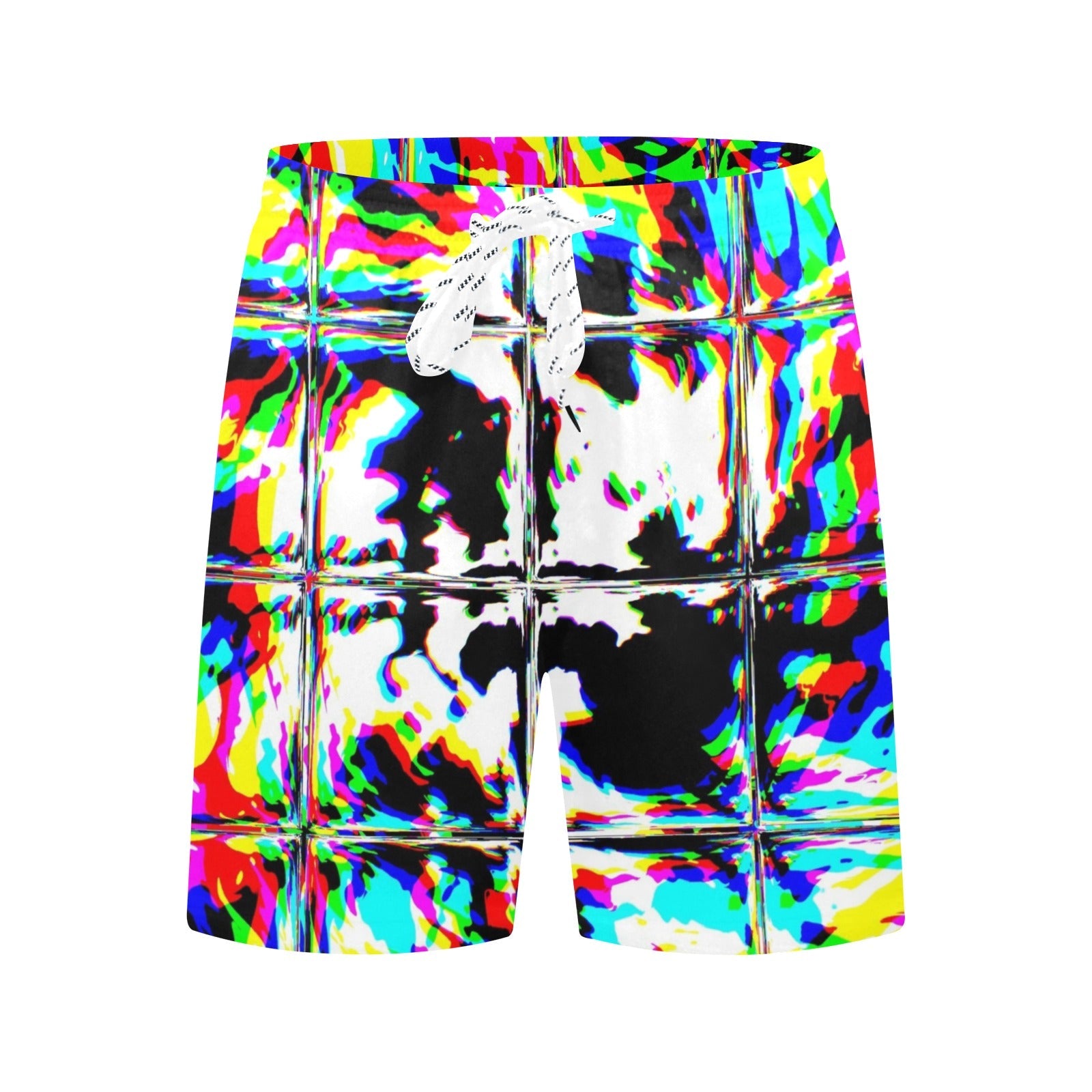 BigTexFunkadelic Psychedelic Rave Glitch Tiles Rainbow Plaid Swim Shorts