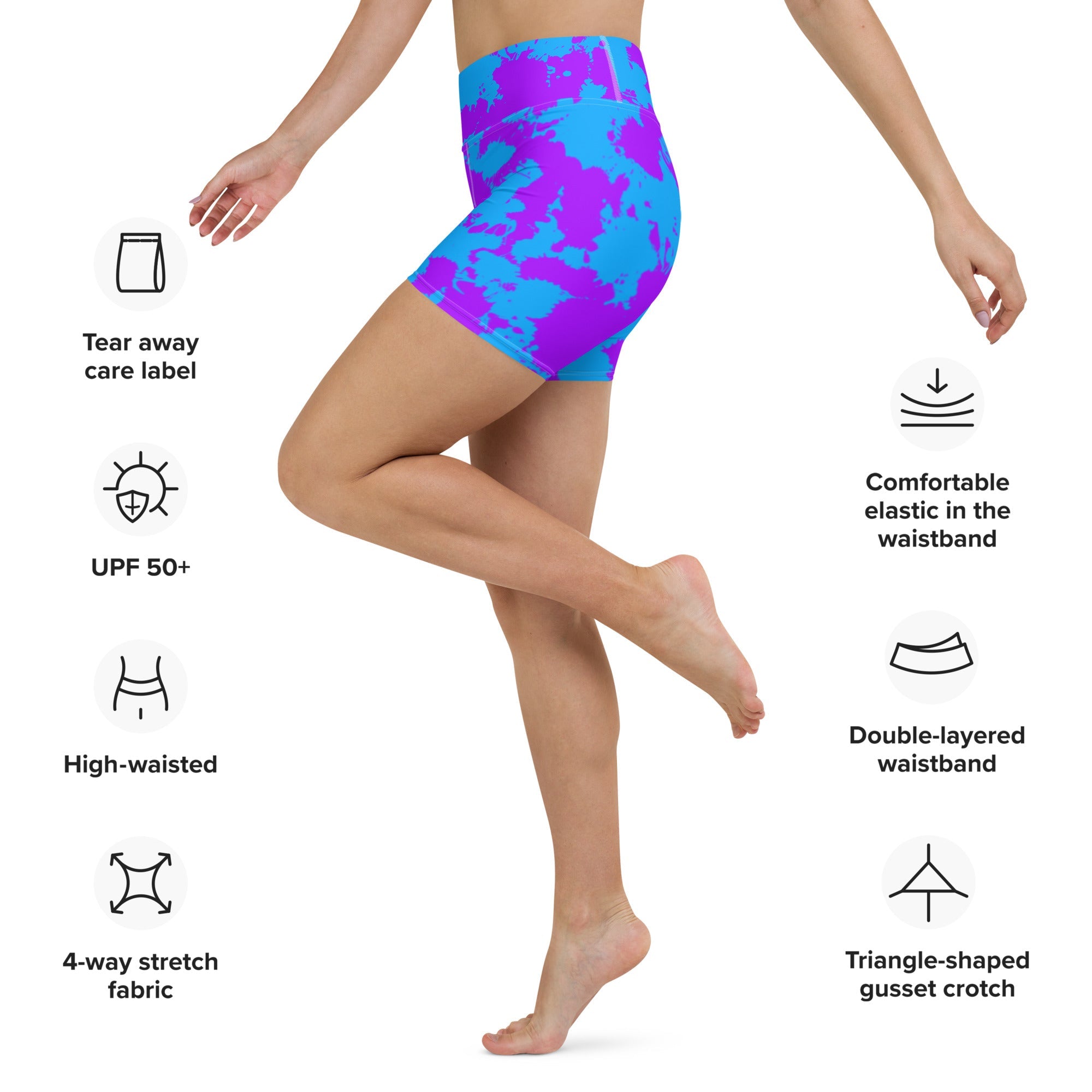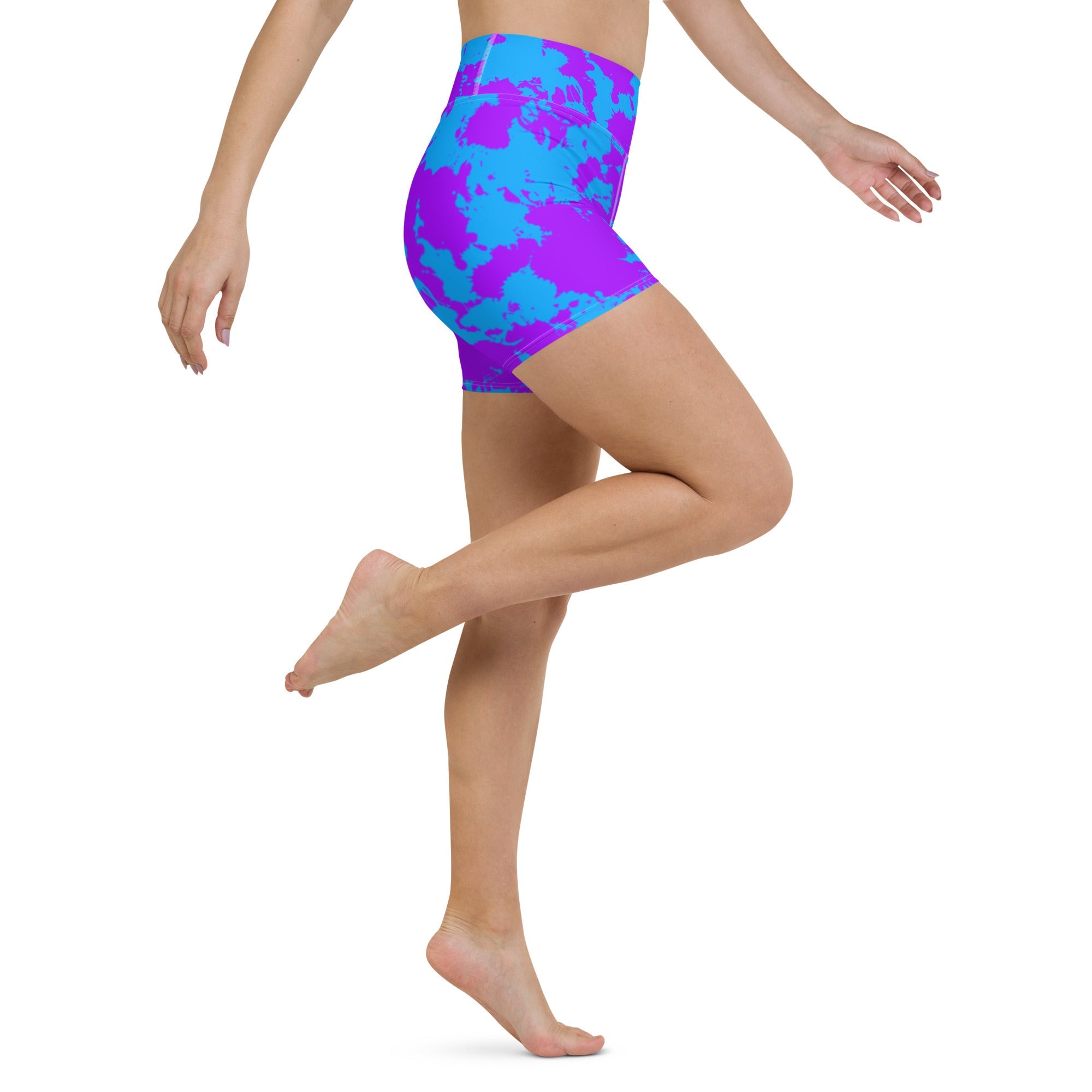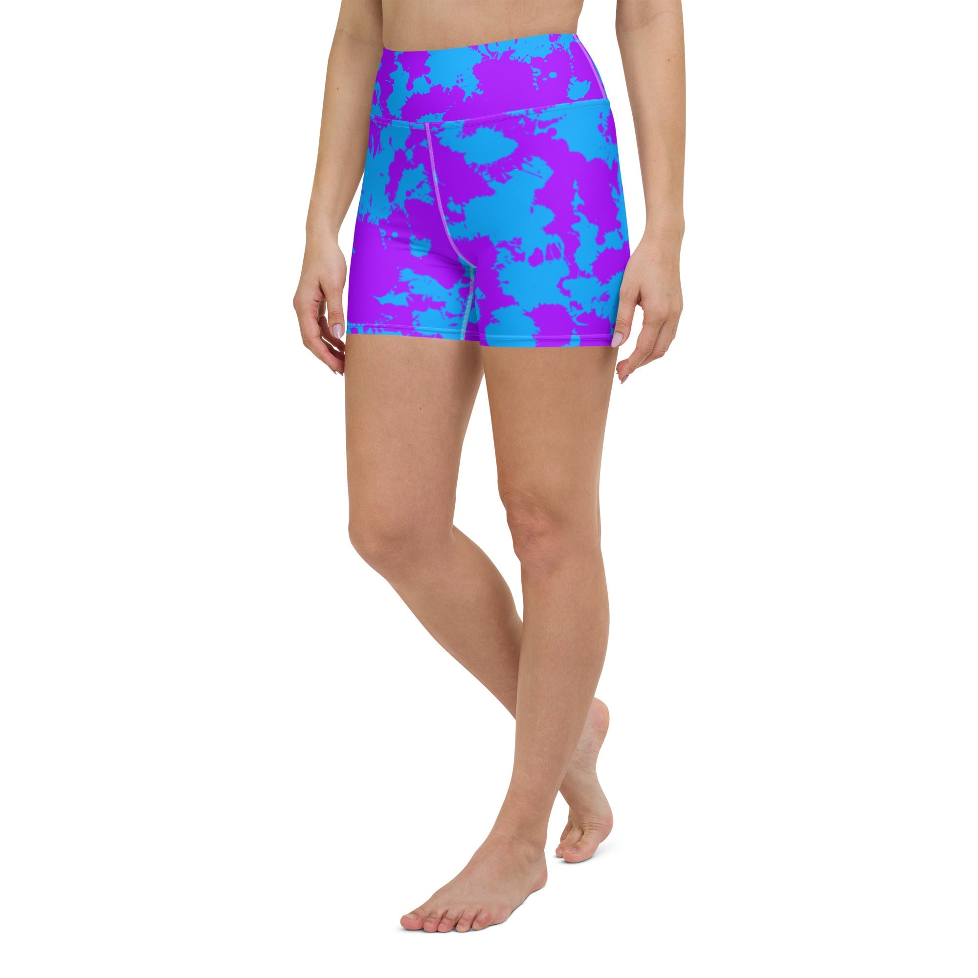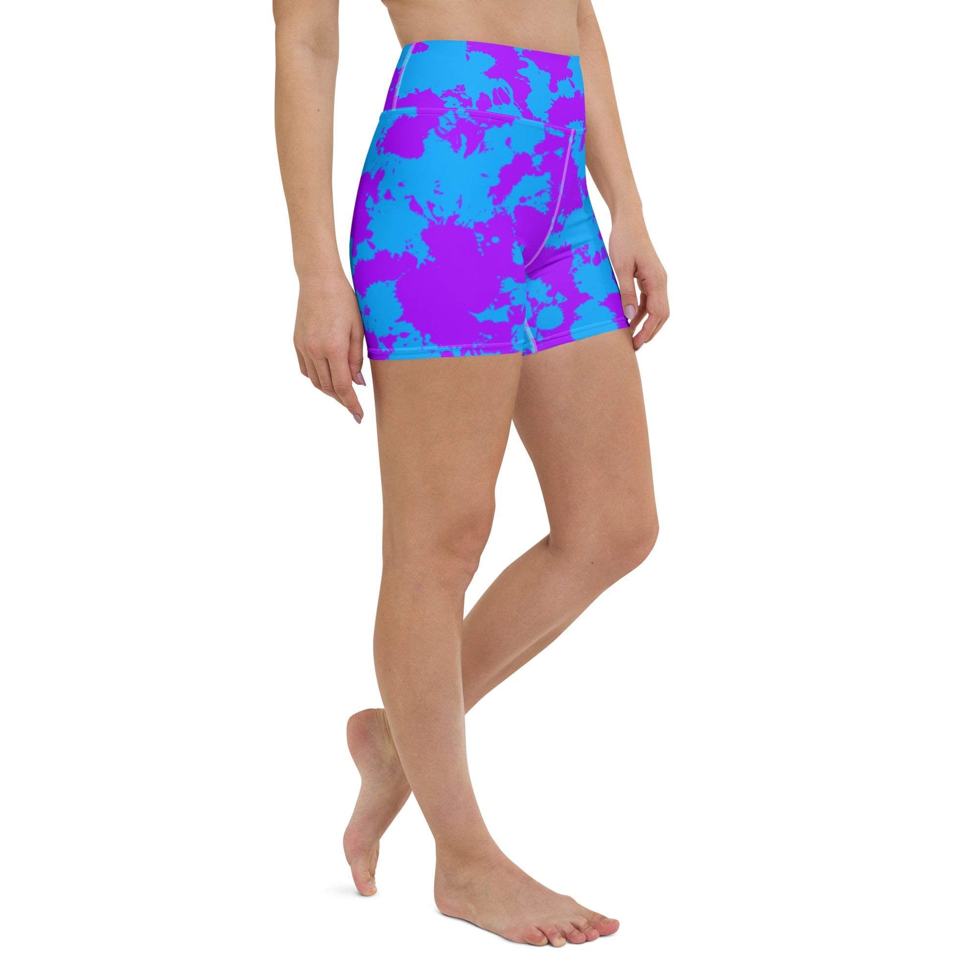 Unleash your inner artist with the Purple and Blue Paint Splatter Rave Ready Yoga Shorts from BigTexFunkadelic. Engineered for comfort, these shorts feature a high waistband and four-way stretch fabric, ideal for both high-energy workouts and casual wear. The eye-catching paint splatter design adds an artistic touch that inspires creativity.