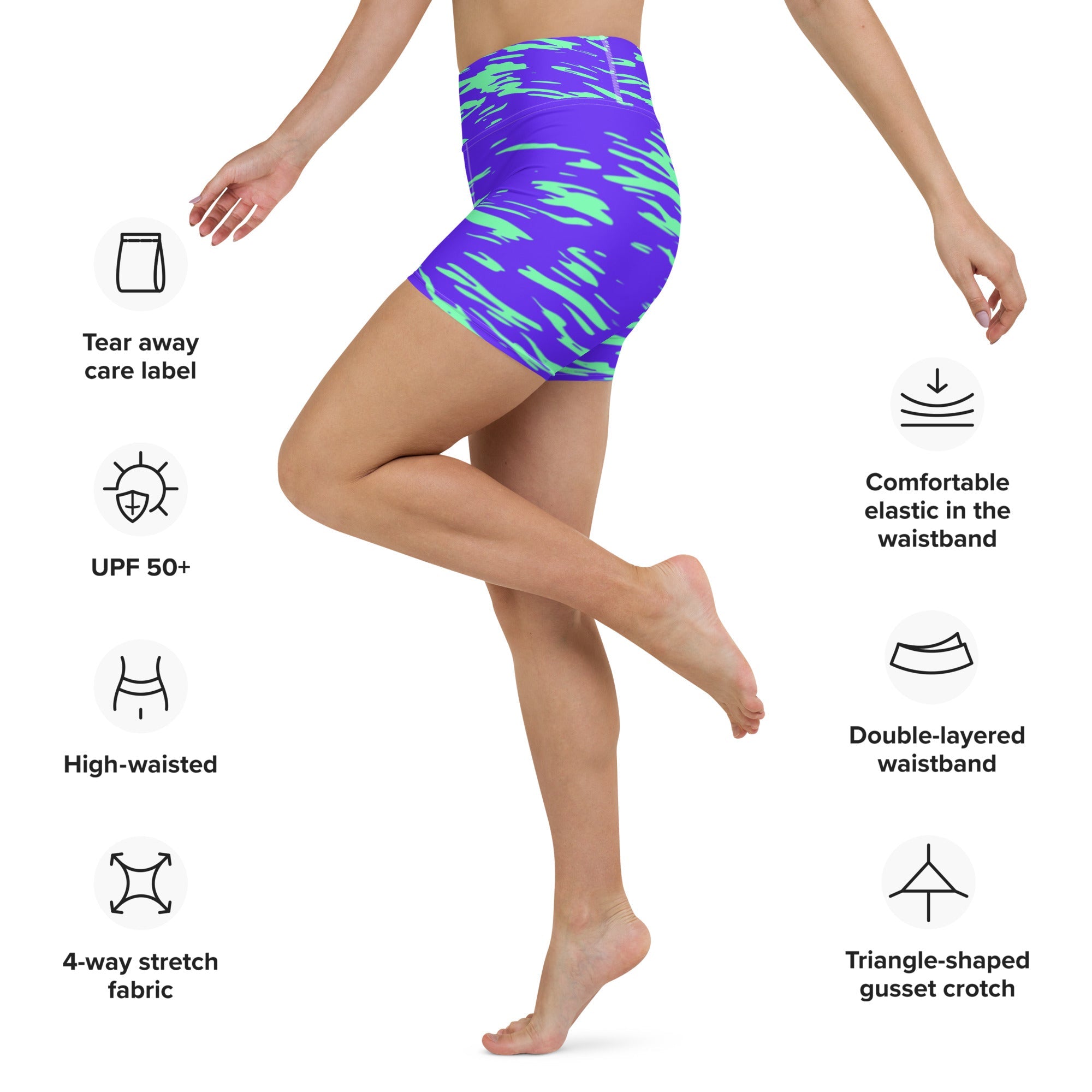 Step into comfort and style with these Purple Mint Rave Zebra Stripe Yoga Shorts from BigTexFunkadelic. Made for movement, the soft microfiber yarn hugs your body in all the right places, making them perfect for intense workouts or dance parties. The vibrant zebra stripes add a playful flair that ensures you stand out in any crowd.