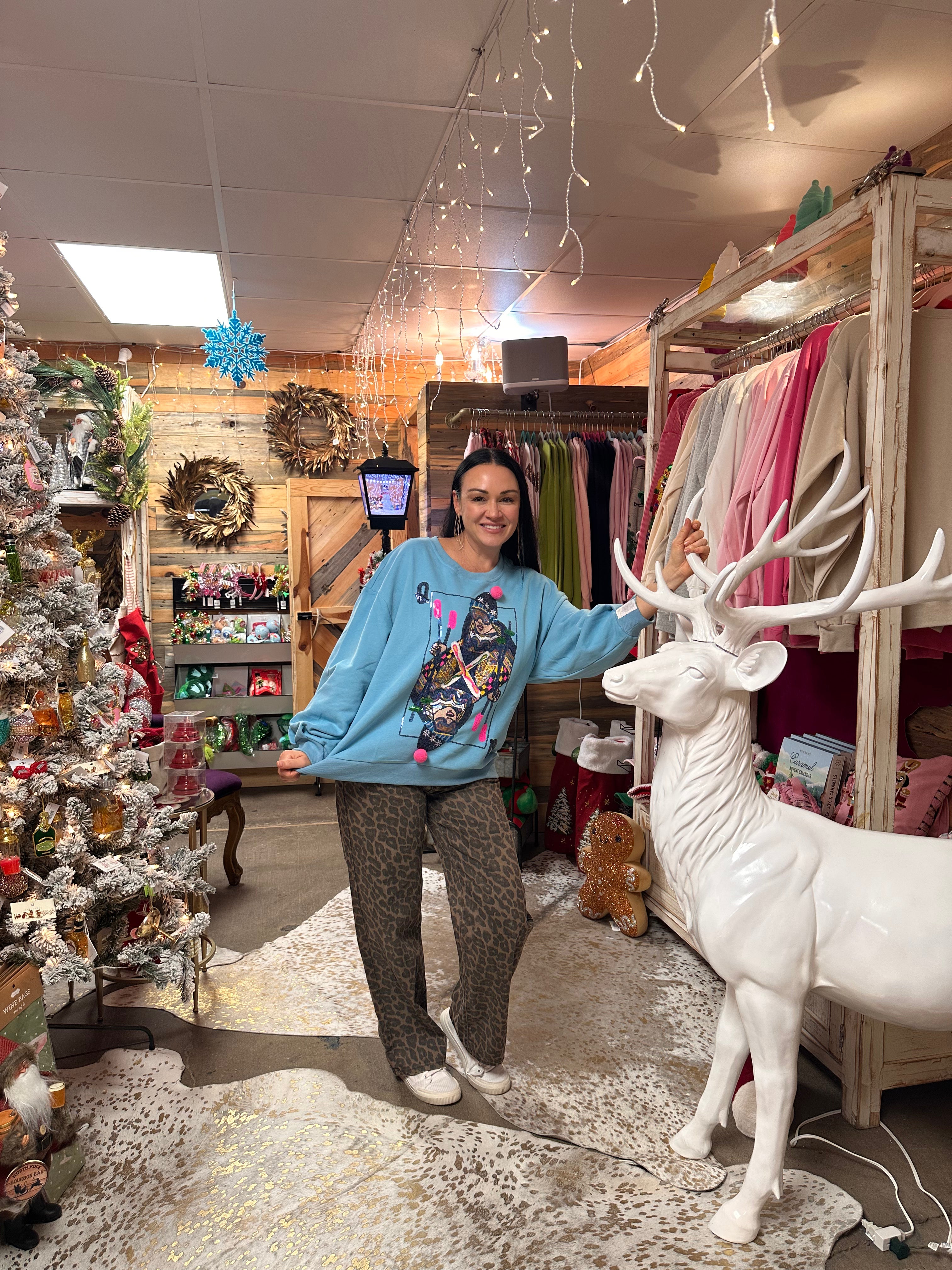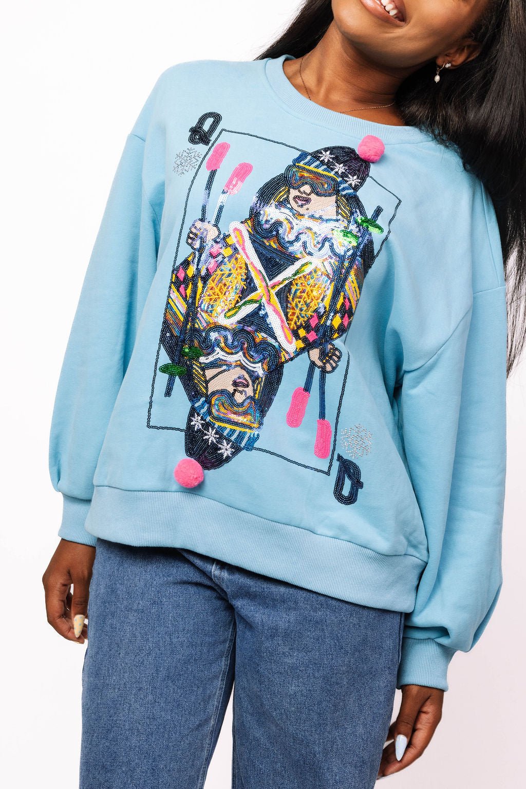 Boutique Bella Bella Queen of Sparkles Aqua Ski QOS Card Sweatshirt