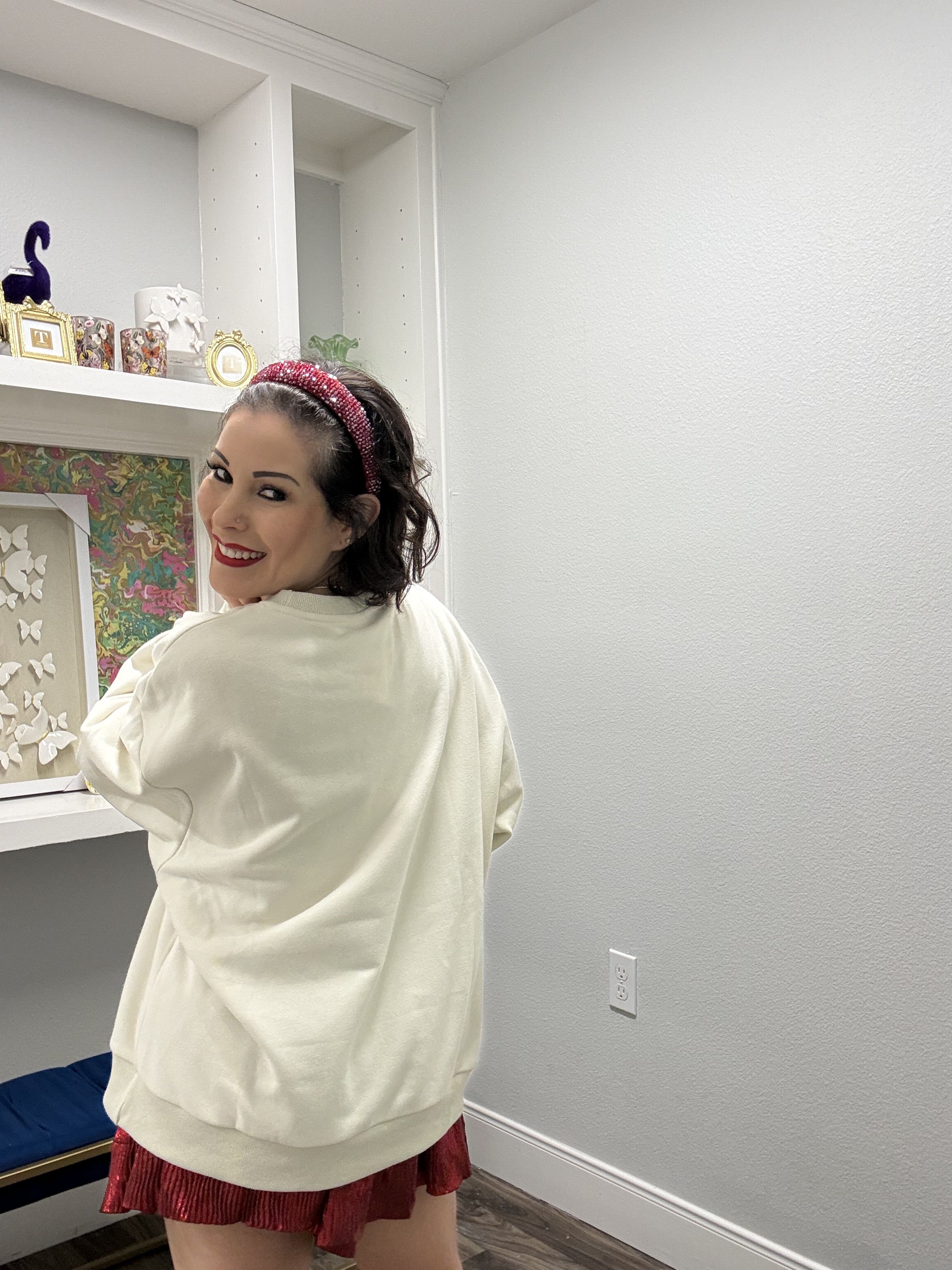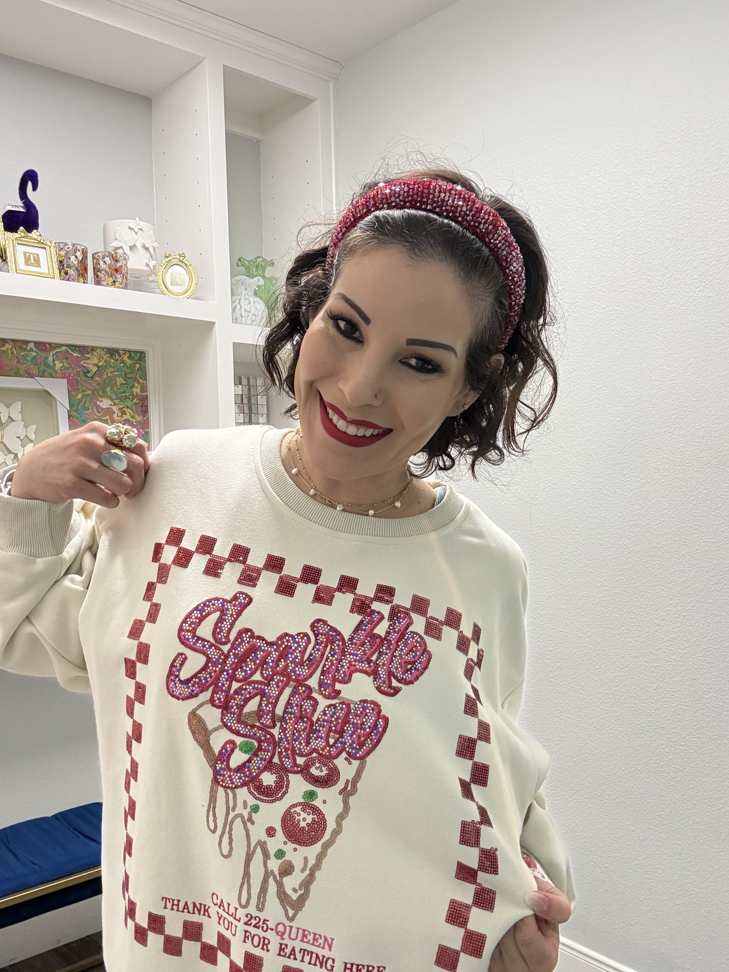 Boutique Bella Bella Queen of Sparkles Beige & Red 'Sparkle Slice' Sweatshirt