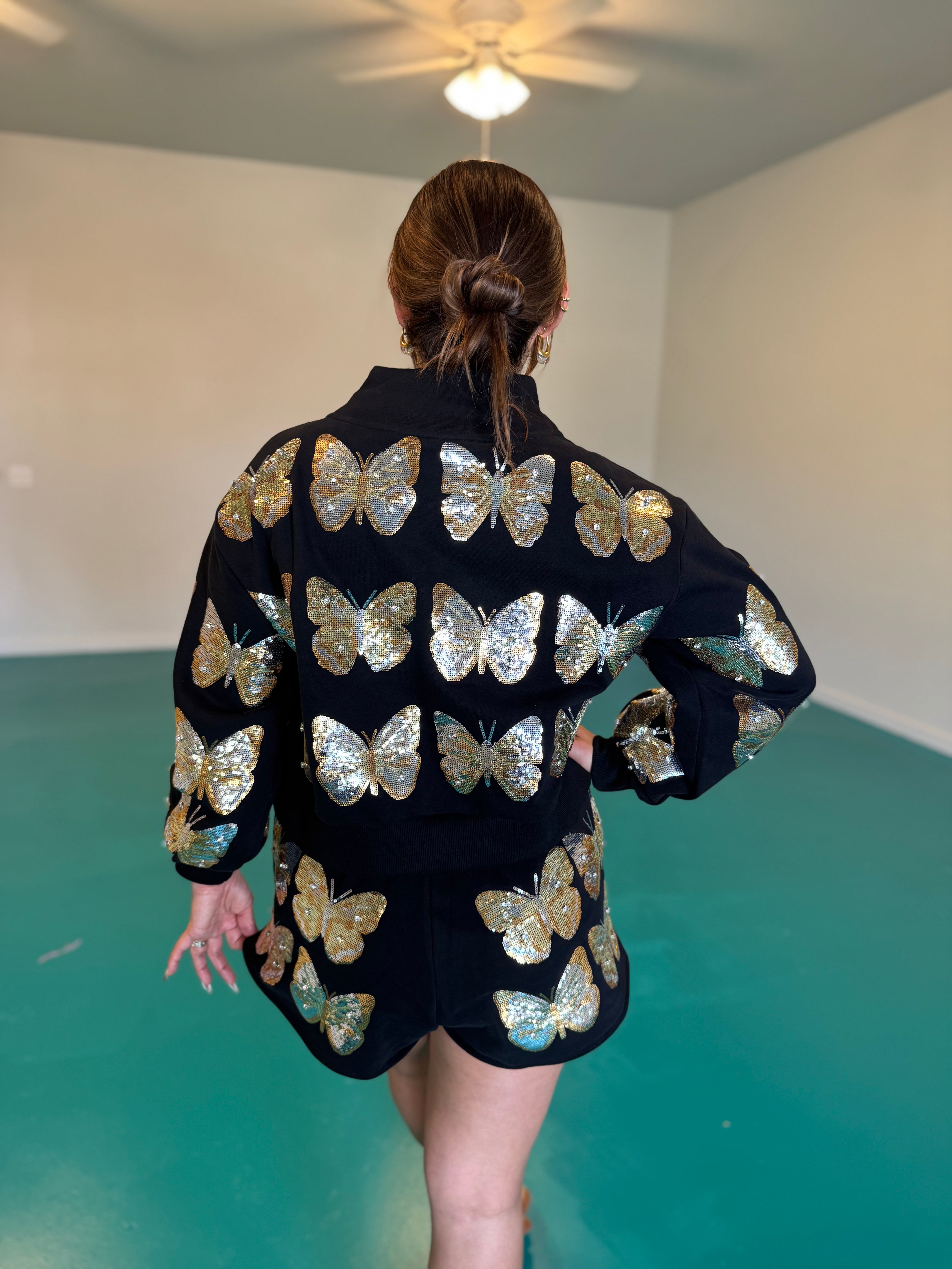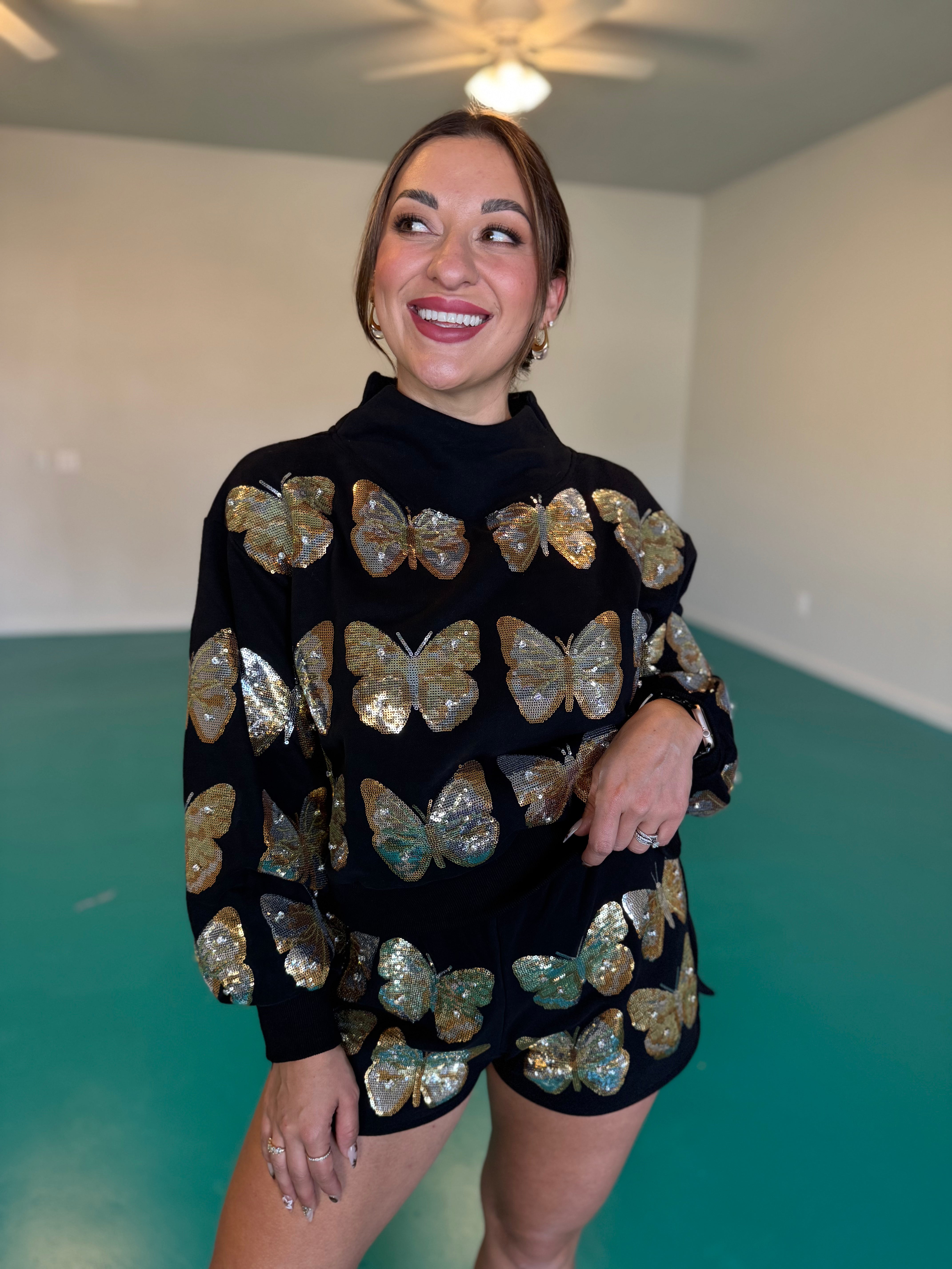 Boutique Bella Bella Queen of Sparkles Black & Gold Sequin Butterfly Short