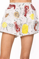 Boutique Bella Bella Queen of Sparkles Black & White Seafood on Newspaper Shorts