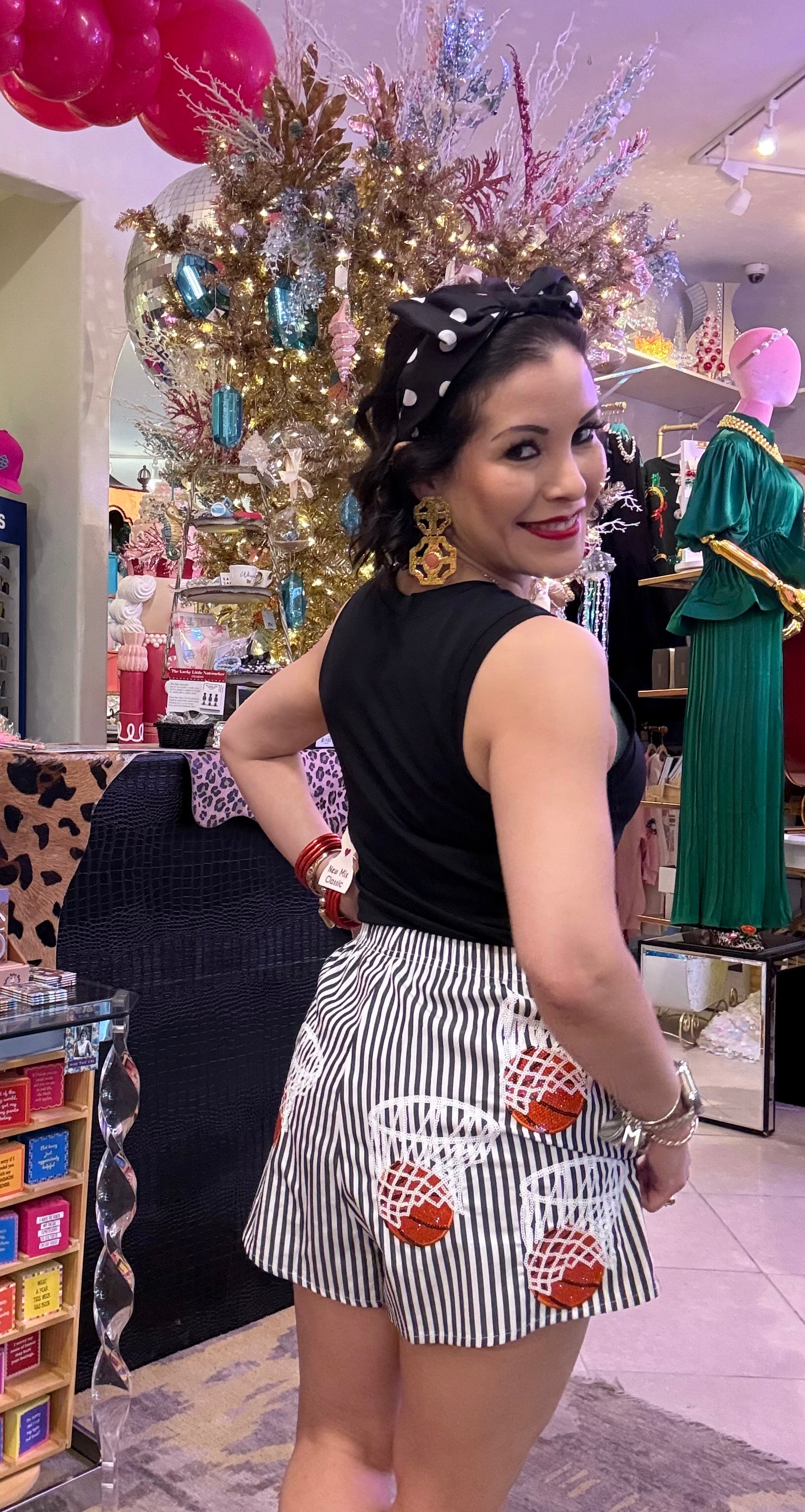 Boutique Bella Bella Queen of Sparkles Black & White Stripe Basketball Hoop Short