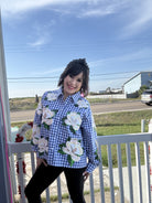 Boutique Bella Bella Queen of Sparkles Blue & White Checkered Scattered Magnolia Button Up Top