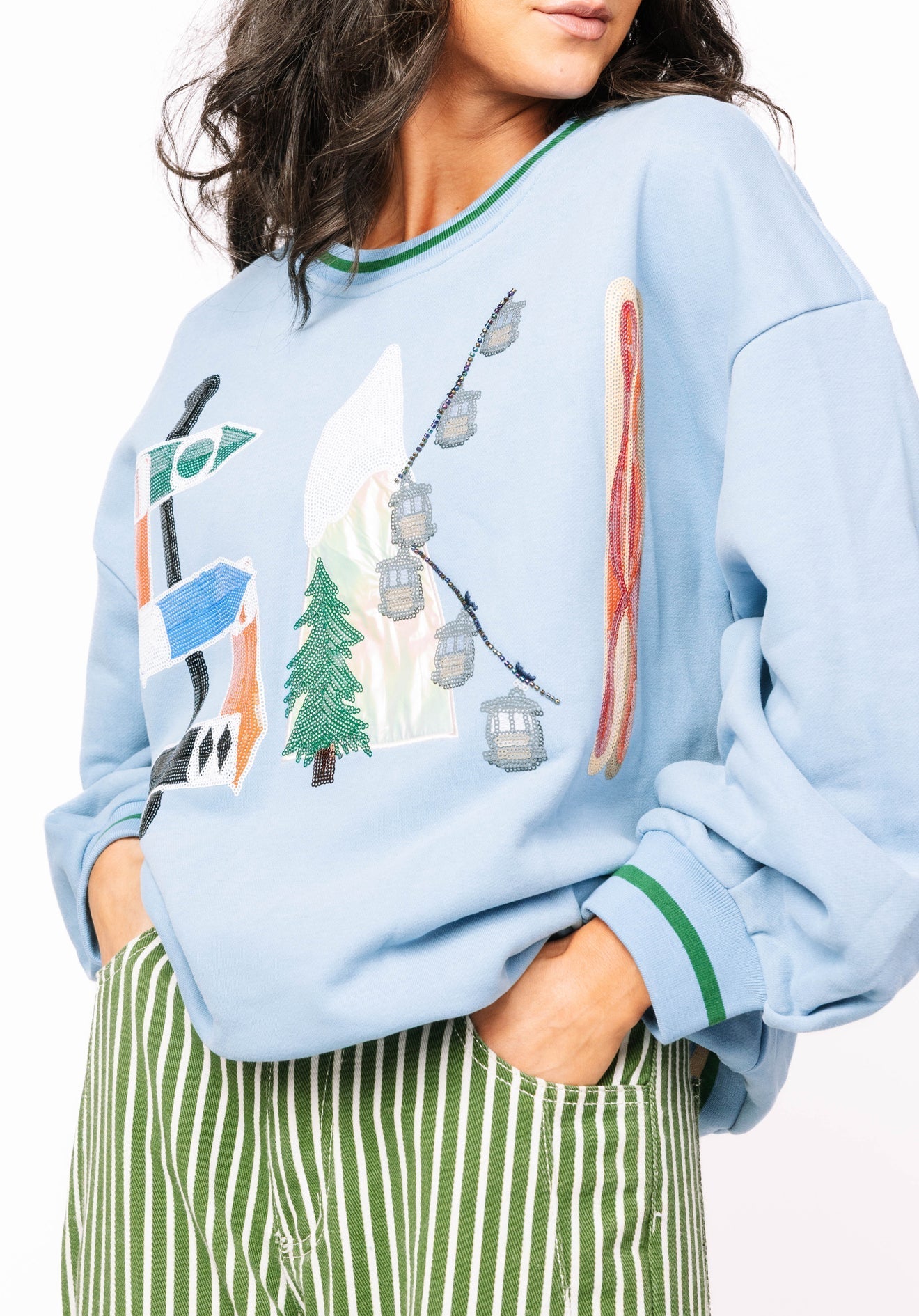 Boutique Bella Bella Queen of Sparkles Dusty Blue 'Ski' Icon Letter Sweatshirt