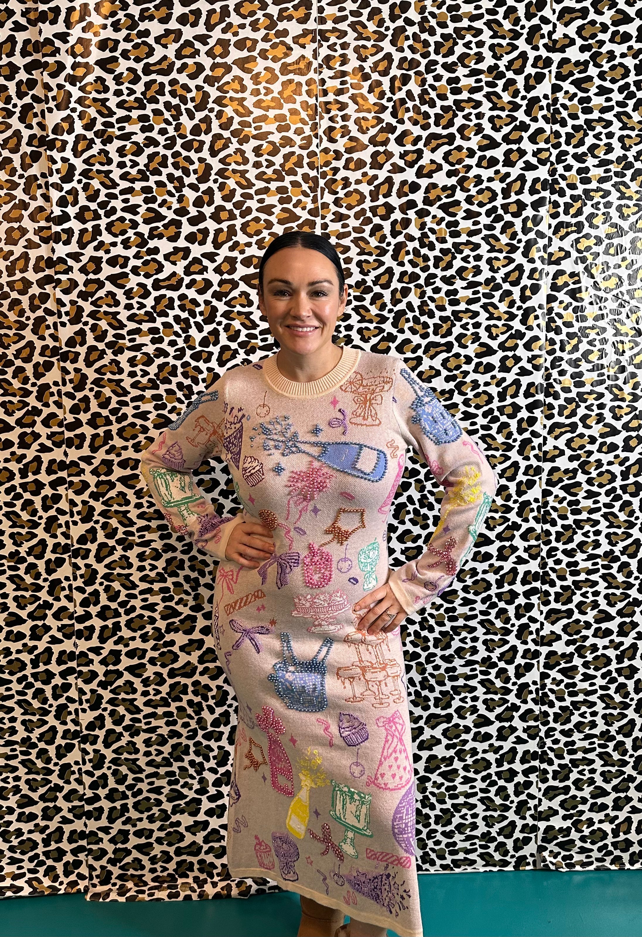 Celebrate your special day in pure joy with this light pink knit dress adorned with delightful birthday icons. The playful design captures the essence of festive spirit, making it an ideal choice for birthday parties, family gatherings, or any occasion where fun is a must.